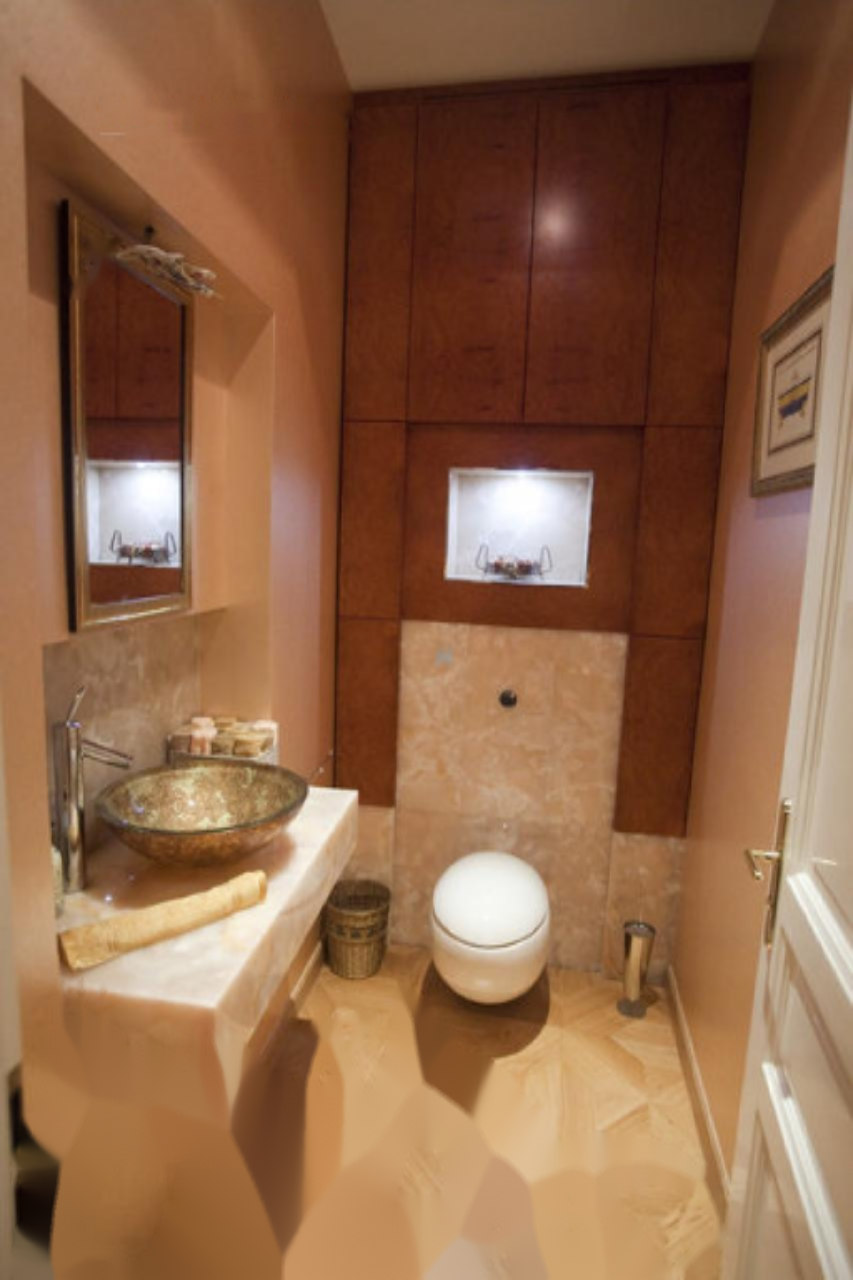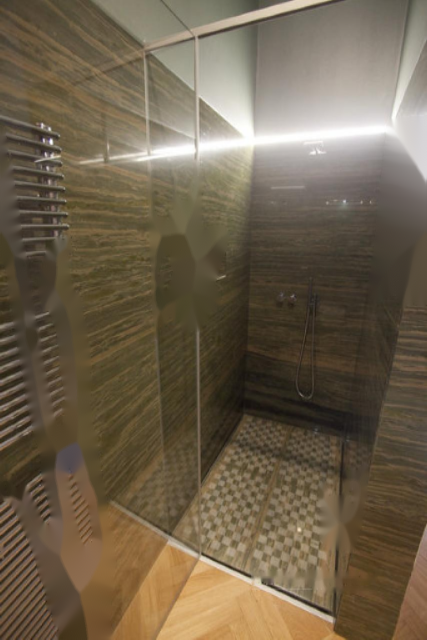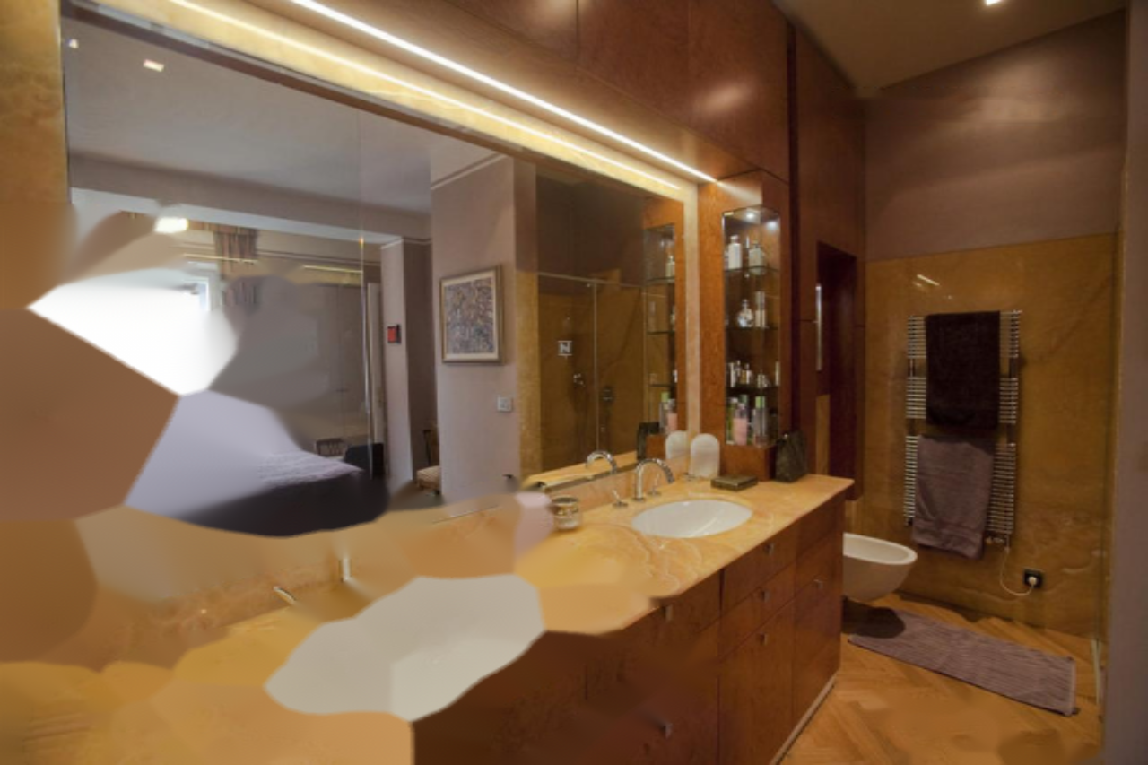 Жилье включает обширное жилое пространство, объединяющее кухню и столовую, площадью 60,3 м². Три просторные спальни, размеры которых составляют 24 м², 17 м² и 16 м², готовы предоставить комфортное размещение. Одна из этих спален имеет личную ванную комнату в 8 м², украшенную великолепным ониксом и укомплектованную сантехникой от Alessi. Дополнительно в квартире имеются вторая ванная комната размером 11 м², отдельный санузел площадью 3 м², гардеробная на 10 м² и хозяйственная комната площадью 4 м².