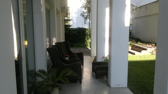На третьем этаже располагается библиотека, а в мансарде — три спальни, каждая снабжена своей ванной комнатой. Для удобства предусмотрены гараж на две машины и навес ещё на два автомобиля.