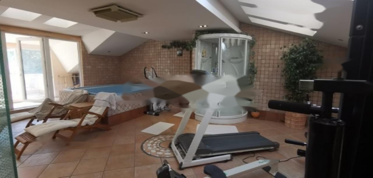 Мансарда преподносит фитнес-зал с сауной, джакузи, душ и санузел. Отсюда можно попасть на просторный балкон с захватывающим видом на лес. Завершают картину медная крыша и обогреваемые водостоки — оригинальные черты данного строения.