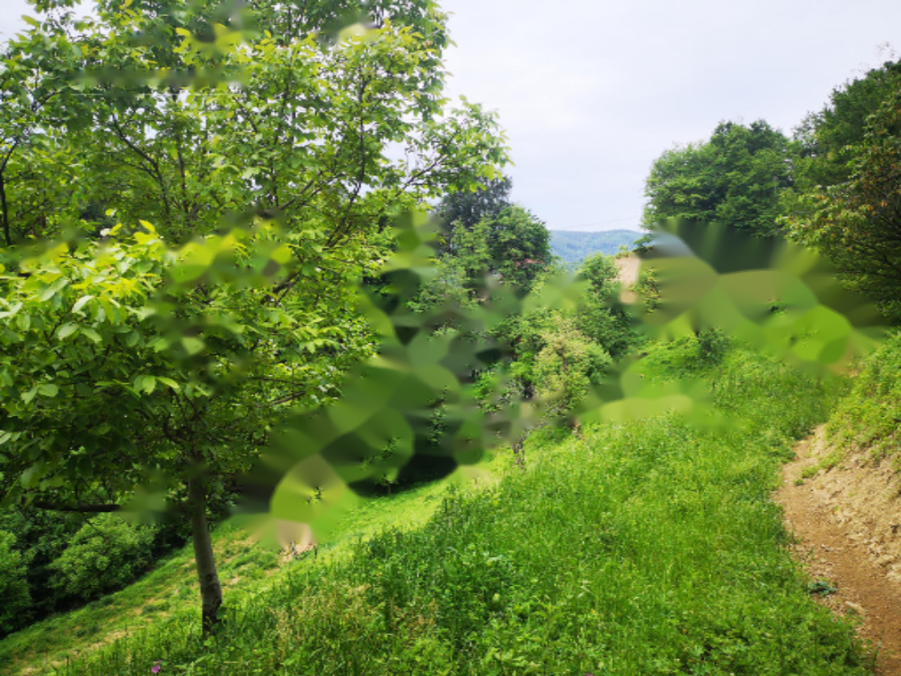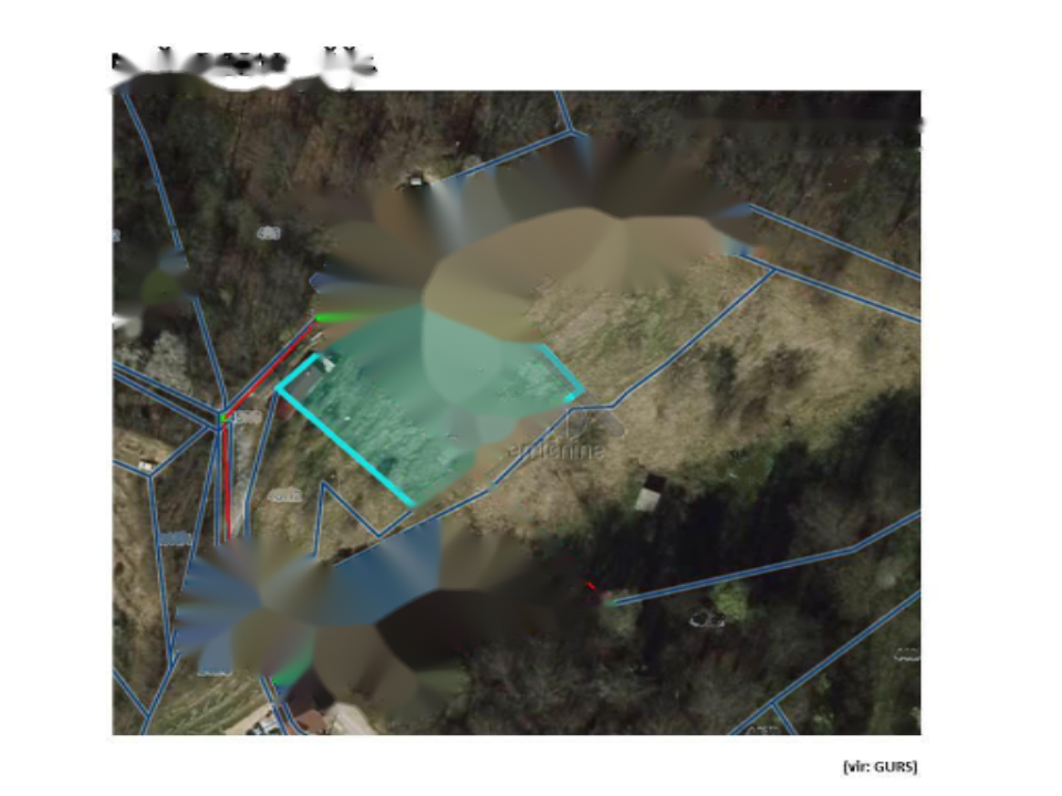 Около 4000 м² земельного надела окружает дом, при этом значительная часть участка классифицируется как сельскохозяйственные угодья и располагается на слегка склонистой местности. Необходимо уточнение границ участка.