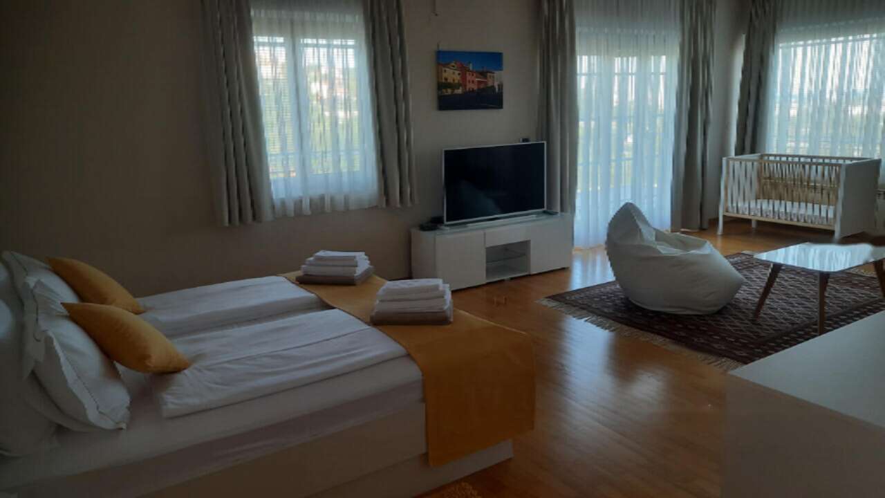 В числе главных достоинств здания - шесть уютных спален и пять ванных комнат, что особенно подходит для многочисленных семей. Кроме них, имеется отдельный санитарный узел и кладовая. Закрытая территория располагает личным бассейном, обширной террасой и балконом, создающими идеальные условия для отдыха на свежем воздухе. Для автомобилей предусмотрено парковочное место, хорошо адаптированное для людей с ограничениями по здоровью.