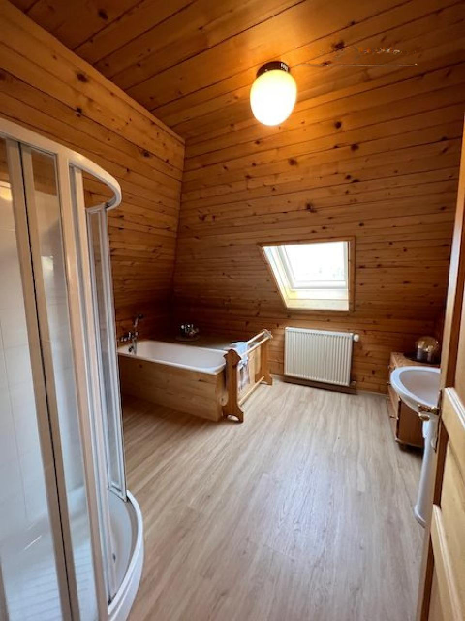 Дом полностью укомплектован. Система центрального отопления работает на тепловом насосе. Участок огорожен, на нём можно разместить несколько автомобилей.