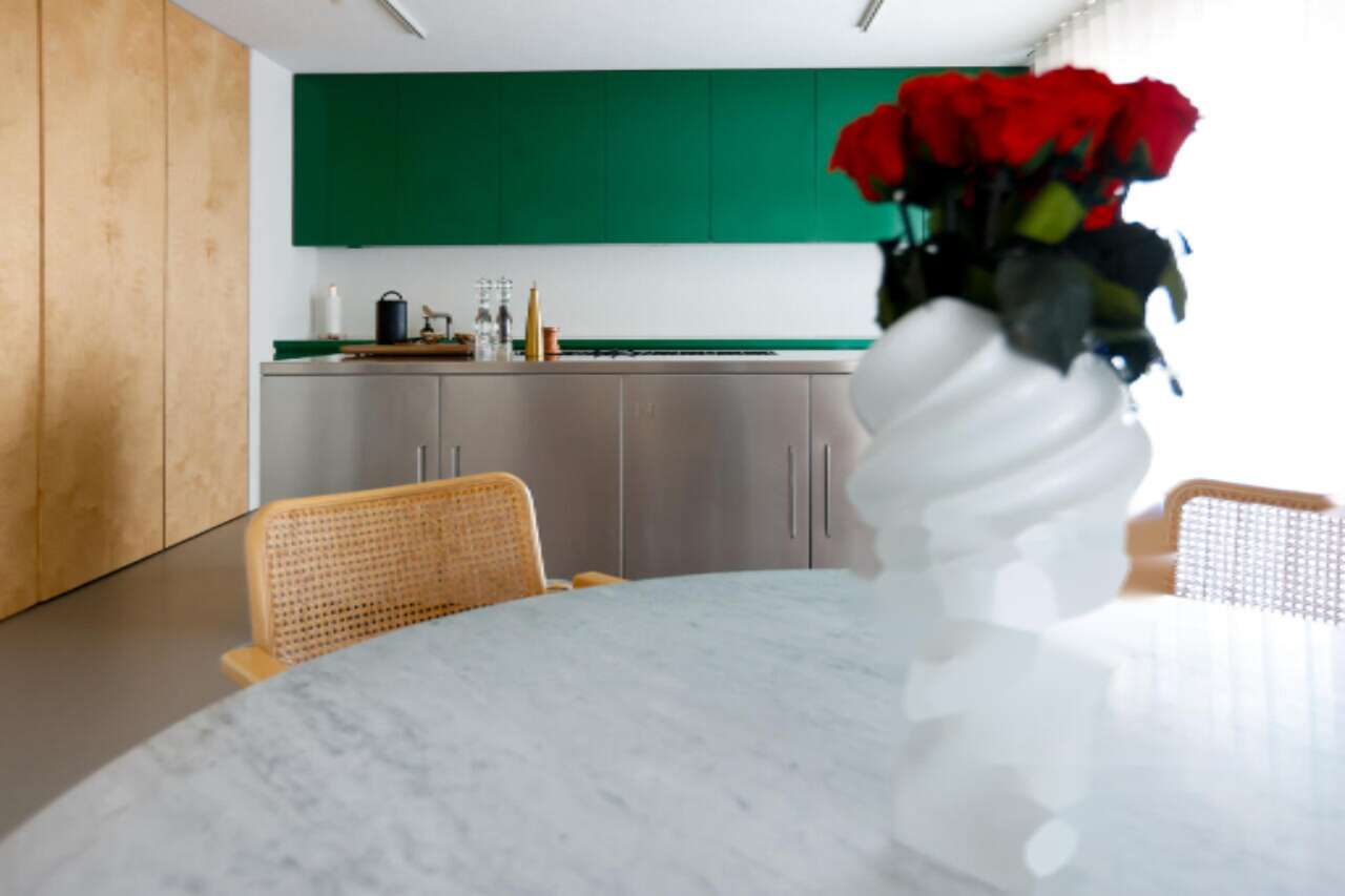 Терраса обладает обширной гостиной, которая плавно переходит в открытую террасу площадью 83 м². Эта зона обустроена летней кухней и накрыта навесом. Уникальный интерьер подчеркнут дизайнерской мебелью на заказ, среди которых выделяются мраморный стол для обедов и красивые персидские ковры. Впечатляющие элементы декора и техники, такие как телевизор B&O, индукционная плита и газовая духовка Barazza, а также биокамин в гостиной, создают атмосферу уюта и изысканности.