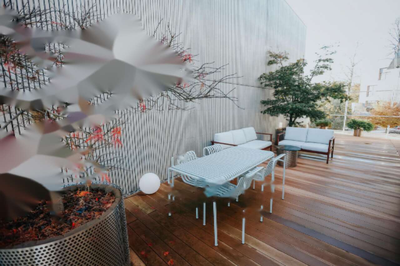 Эта современная собственность включает три спальни и две ванные комнаты, а также предоставляет два удобных парковочных места и гараж. На террасе высажены девять великолепных японских кленов, оснащенных системой автоматического полива, а на террасах и в гараже реализовано напольное отопление. Дом оборудован воздухоочистителями, кондиционерами, системой оптического интернета, прочной дверью с защитой от взлома и сигнализацией.