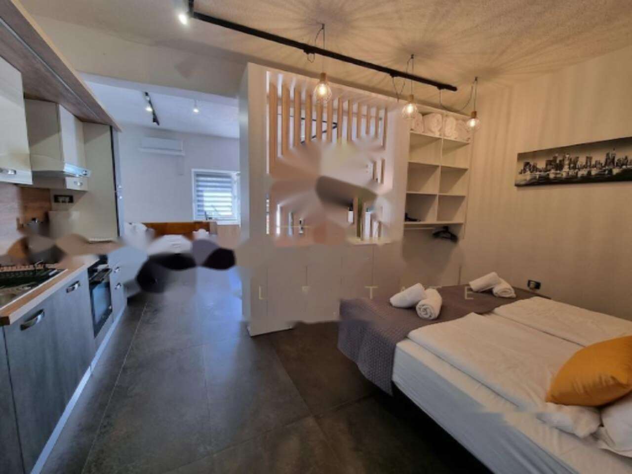 Недвижимость состоит из двух соединенных домов, в каждом из которых имеются 4 независимых жилых блока с личными входами, что подходит для комфортного проживания и сдачи в аренду. Первый дом, выполненный в стиле средиземноморья, был полностью обновлен в 2023 году. На его первом этаже расположены два небольших апартамента площадью 42,51 м² и 22,91 м². Второй этаж занимает современный апартамент площадью 64,48 м² с отлично обустроенной гостиной, двумя спальнями и ванной комнатой, дополненный балконом и крытой террасой. Подогреваемые полы и новая стильная мебель обеспечивают высочайший уровень комфорта.