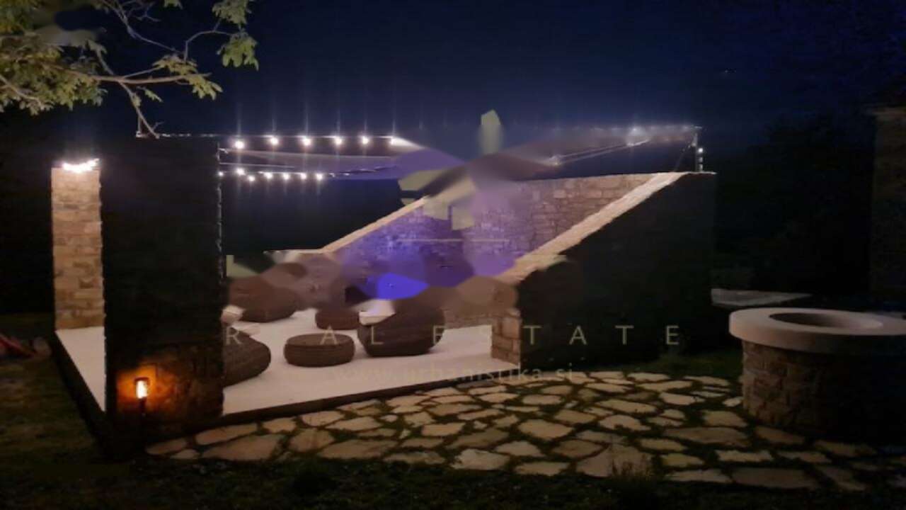 Второй дом сохраняет аутентичность старинной истрианской каменной архитектуры и предлагает просторное жилье на верхнем этаже. Нижний уровень включает зону для отдыха и здоровья с сохранением уникальных черт здания. Вокруг сооружения располагается уютный каменный двор, травяные газоны и зона отдыха с джакузи-бассейном, а также просторные парковочные места на 9 автомобилей.