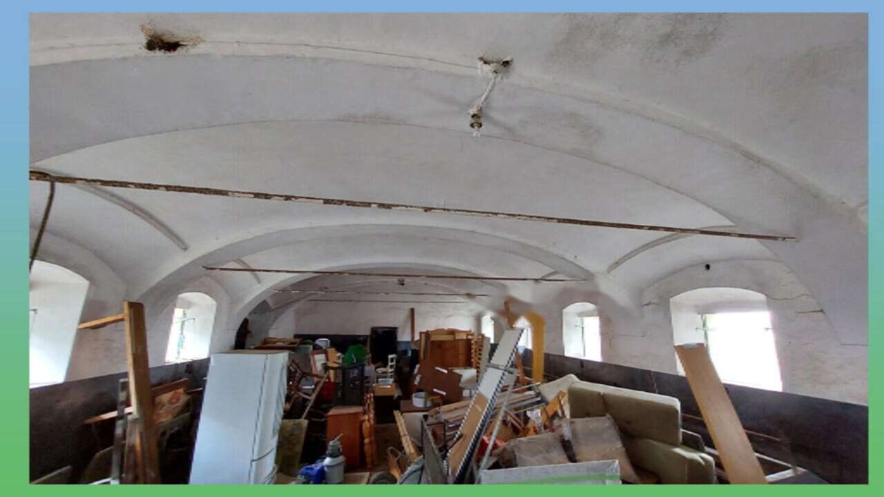 Комплекс строений на территории включает два жилых дома, просторное хозяйственное здание и дровяник. Первая жилая постройка от 1747 года располагает 101 м² жилой площади и оснащена террасой и подвалом. В ней обновлены окна в 2003 году, имеется камин, система радиаторного отопления, работающая на дровах и масле, с энергетическим классом G. Вторая жилая постройка, возведенная в 1970 году, включает три гаража и недостроенную часть. Здание рассчитано на две или три квартиры и нуждается в проведении внутренних работ и установке системы отопления. Деревянный сарай 1940 года занимает 65 м². Хозяйственная постройка, датируемая 1805 годом, занимает площадь 536 м² и ранее использовалась в качестве амбаров и техники для хранения.