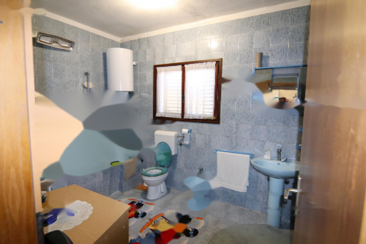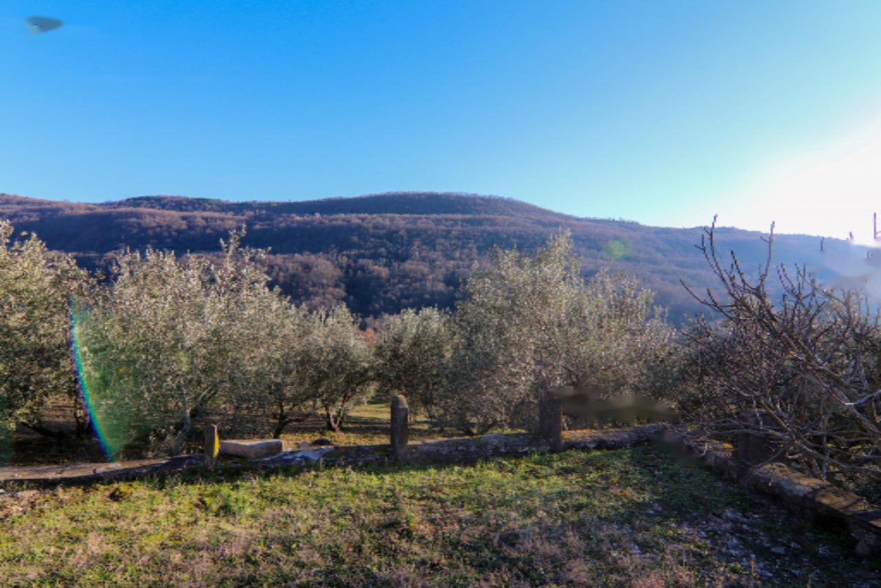 Двухэтажный дом оборудован тремя спальнями, одной ванной комнатой, просторной гостиной с обеденной зоной, кухней и кладовой. С балкона открывается захватывающий вид на оливковые деревья и холмы, простирающиеся до хорватской границы. На территории рядом с домом расположены 450 оливковых деревьев, возраст которых составляет около 25 лет, а также такие плодовые деревья, как вишни, яблони, инжир, миндаль и мандарины, наряду с прочими средиземноморскими растениями.