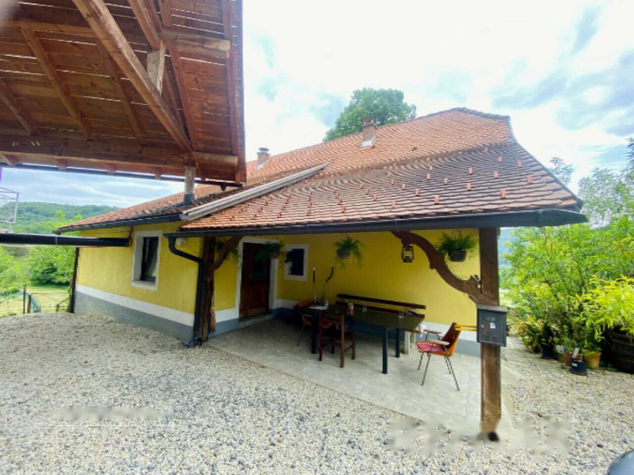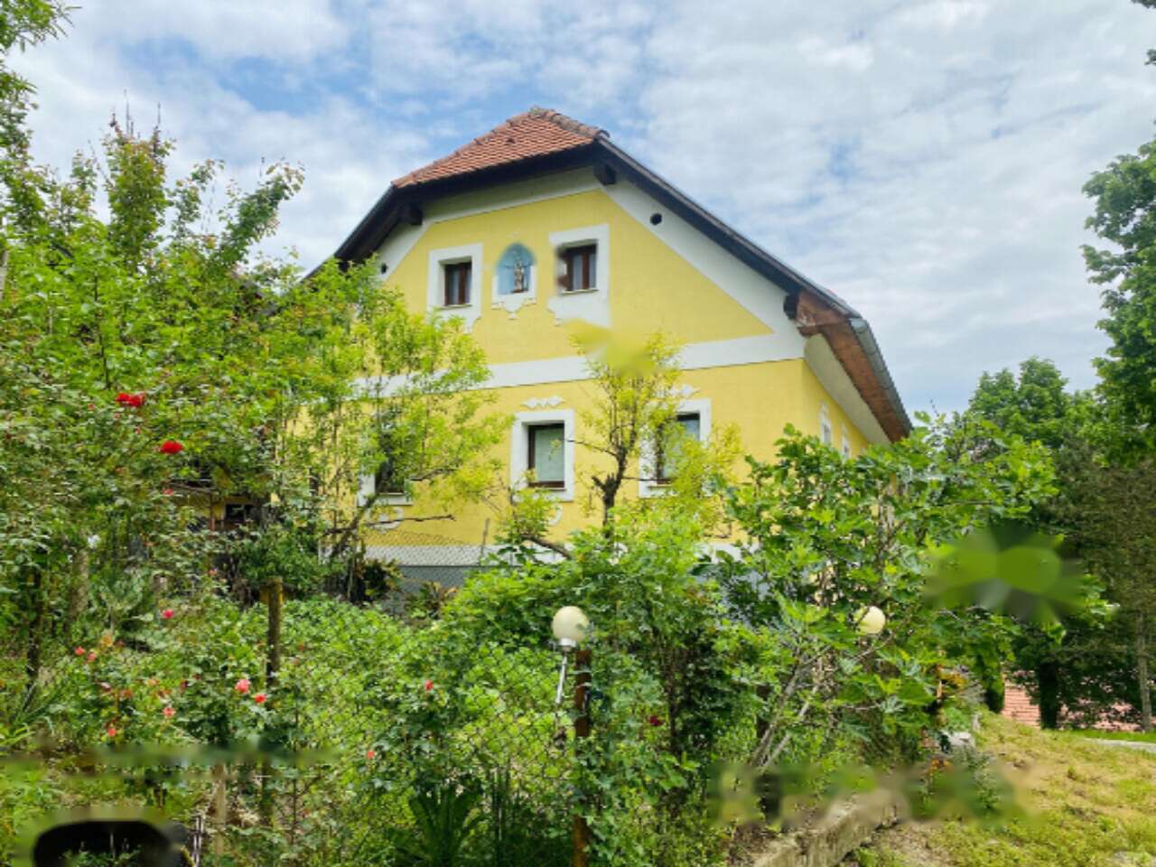 - Жилой дом площадью 78,8 м2, построенный в 1977 году, частично обновленный в 2017. Включает гараж и жилое помещение наверху.
