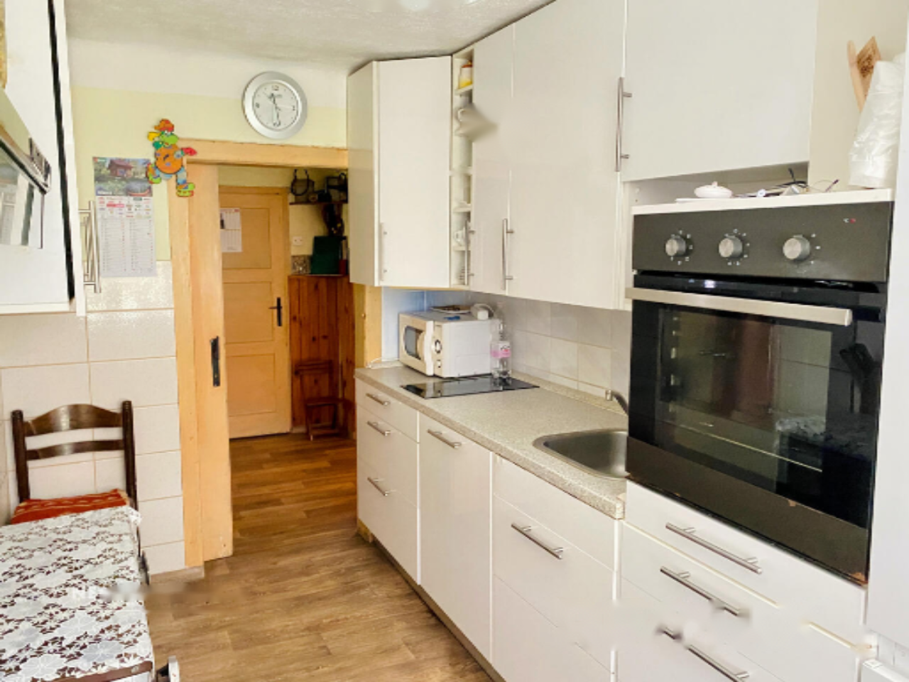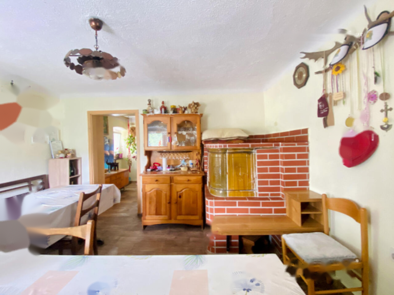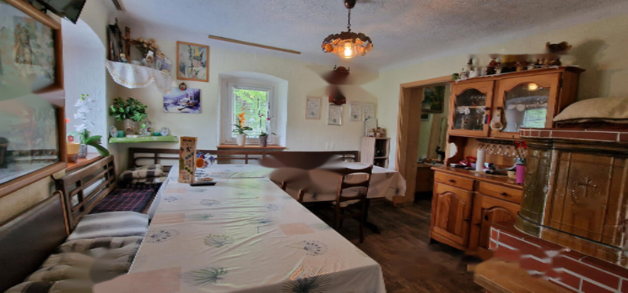 - Жилой дом площадью 276,7 м², возведенный в 1890 году и полностью модернизированный в 1990. Обновление кухни и столовой произошло в 2018 году, а замена окон, за исключением кухни и ванной, – в 2017. Здание имеет статус культурного наследия и включает традиционную черную кухню с керамической печью. Планировка включает коридор, ванную, кухню, столовую с печью и большим деревянным столом, две спальни и черную кухню с доступом на чердак. Дом оборудован подвальным помещением.