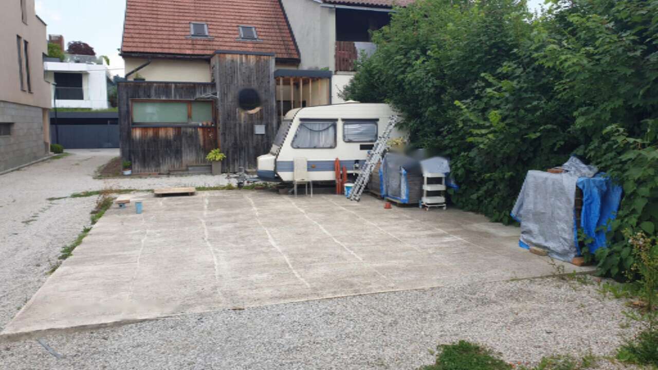 Этот участок расположен в конце улицы с тихой атмосферой и прекрасным видом на реку Любляницу, что особенно привлекает внимание благодаря природному окружению и водоемам вблизи.