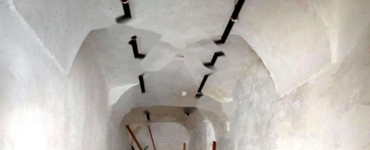 Первый этаж: коммерческое пространство (ранее функционировавшее как музей), три оригинальные кладовые под сводами, общая площадь — 70 м².