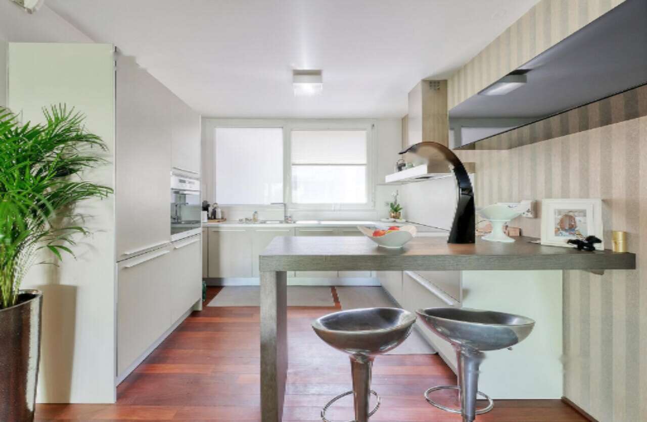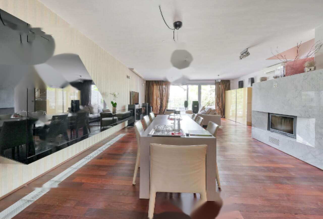 Соединённое пространство гостиной, столовой и кухни на первом этаже сохраняет ощущение простора и плавно перетекает в ухоженный сад и террасу. Гостиная дополнена роскошным камином и просторным прихожей, а также гостевым санузлом. Дом оборудован двумя входами: через гараж и на уровне первого этажа.