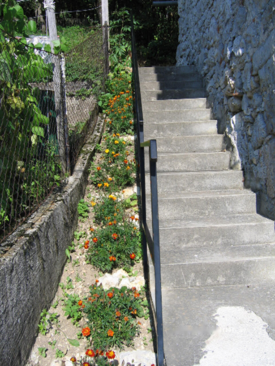 Участок в 642 м² включает сад с фруктовыми деревьями, расположенный на небольшом возвышении за домом, и огороженный огород. Внутренние пространства частично реновированы в 2019 году, включая новую электропроводку. Крыша была обновлена в 1979 году. Подключены водоснабжение, канализация и оптический интернет с выходом в распределительный шкаф дома.