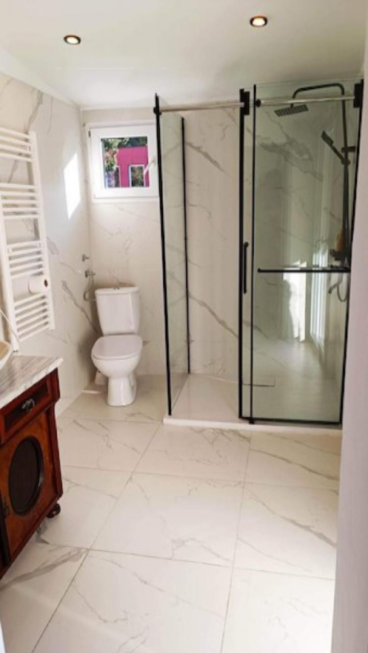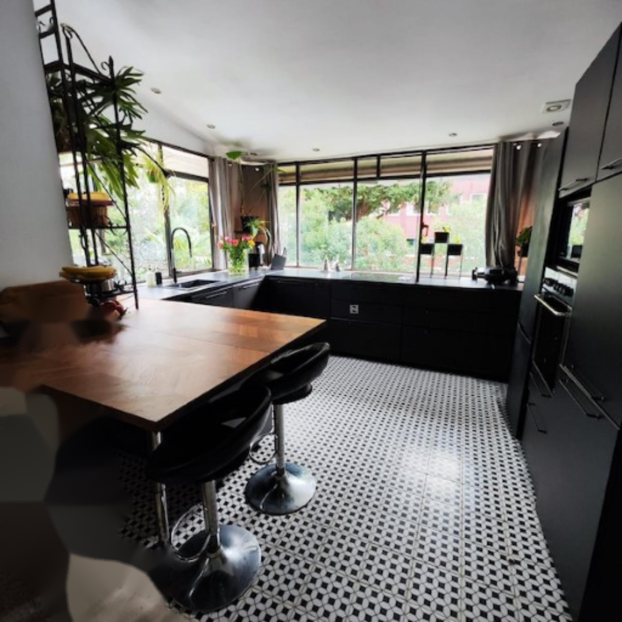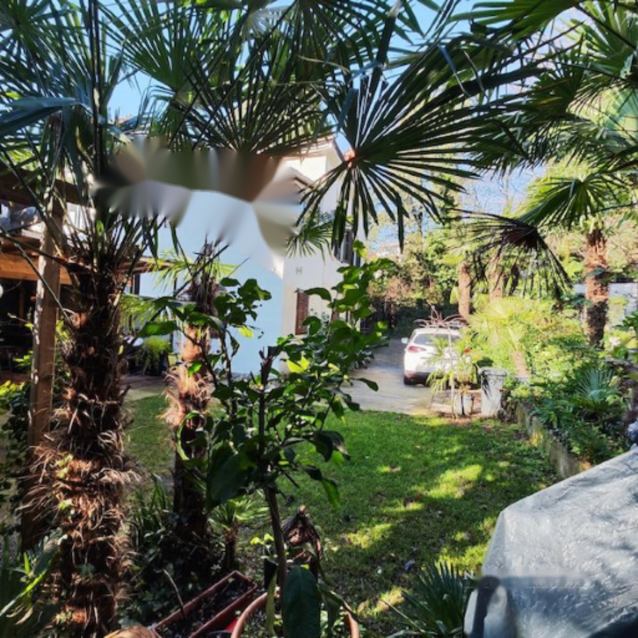 На первом уровне есть совсем новая летняя кухня 30 м² с санузлом, прачечной и отдельным туалетом. Прекрасно обустроенный и огороженный сад обеспечивает уютное уединённое место для отдыха. На втором этаже расположена большая кухня с обеденной зоной, щедрой на стеклянные элементы, две спальни, небольшая кухня, просторная ванная и два балкона. Также имеется промежуточный уровень с маленькой ванной комнатой. Мансарда располагает тремя спальнями и двумя ванными комнатами.