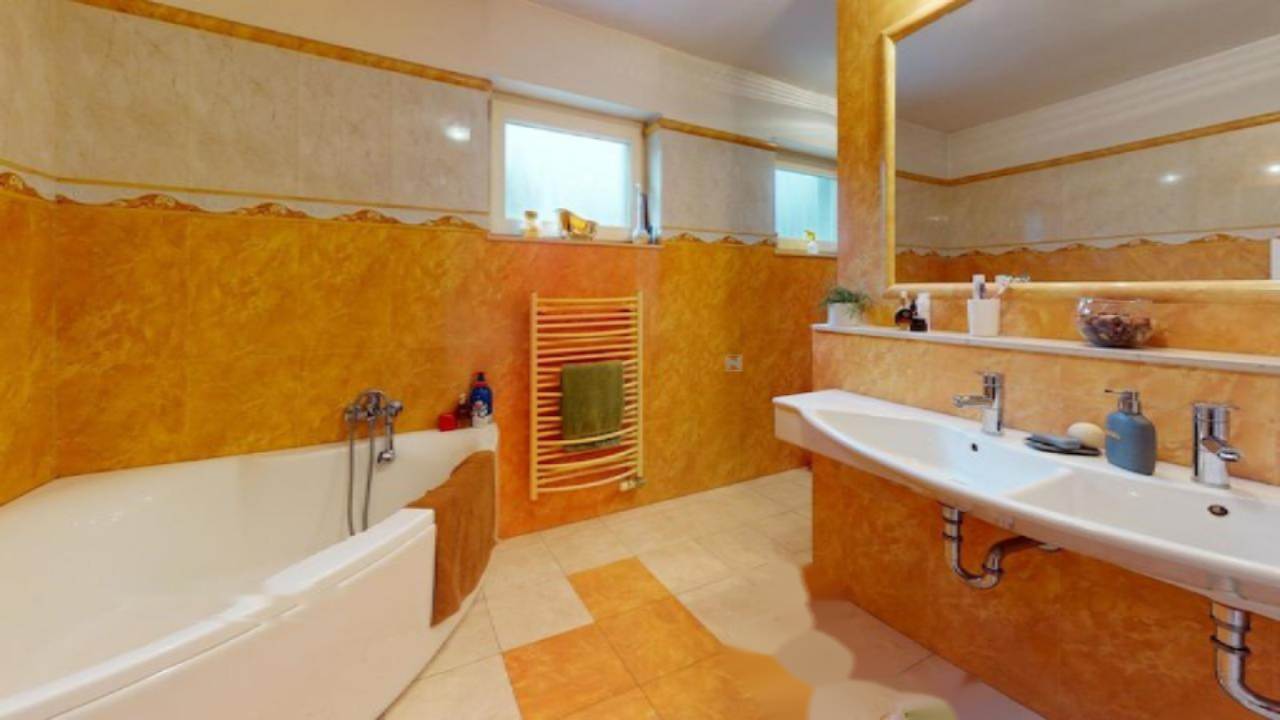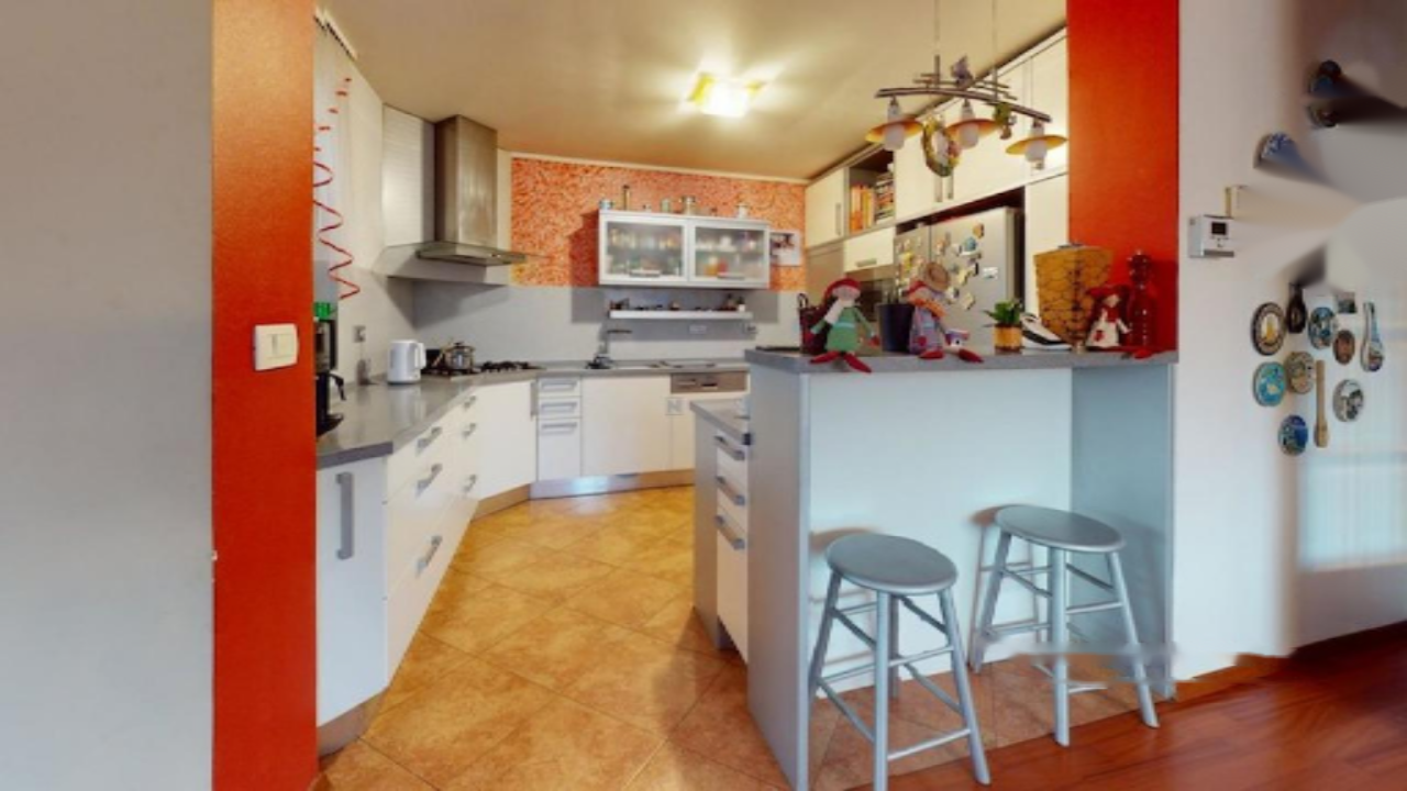 Внутри вы найдёте паркет и керамическое покрытие, трёхслойные ПВХ окна и противовзломные двери. Отопительная система разделена: частично тёплые полы, частично радиаторы, а камин в гостиной, соединённой с обеденной зоной, добавляет уют. Надкрытая терраса плавно переходит в уютный дворик с системой полива, идеально подходящий для садоводства и игр с детьми или домашними животными.