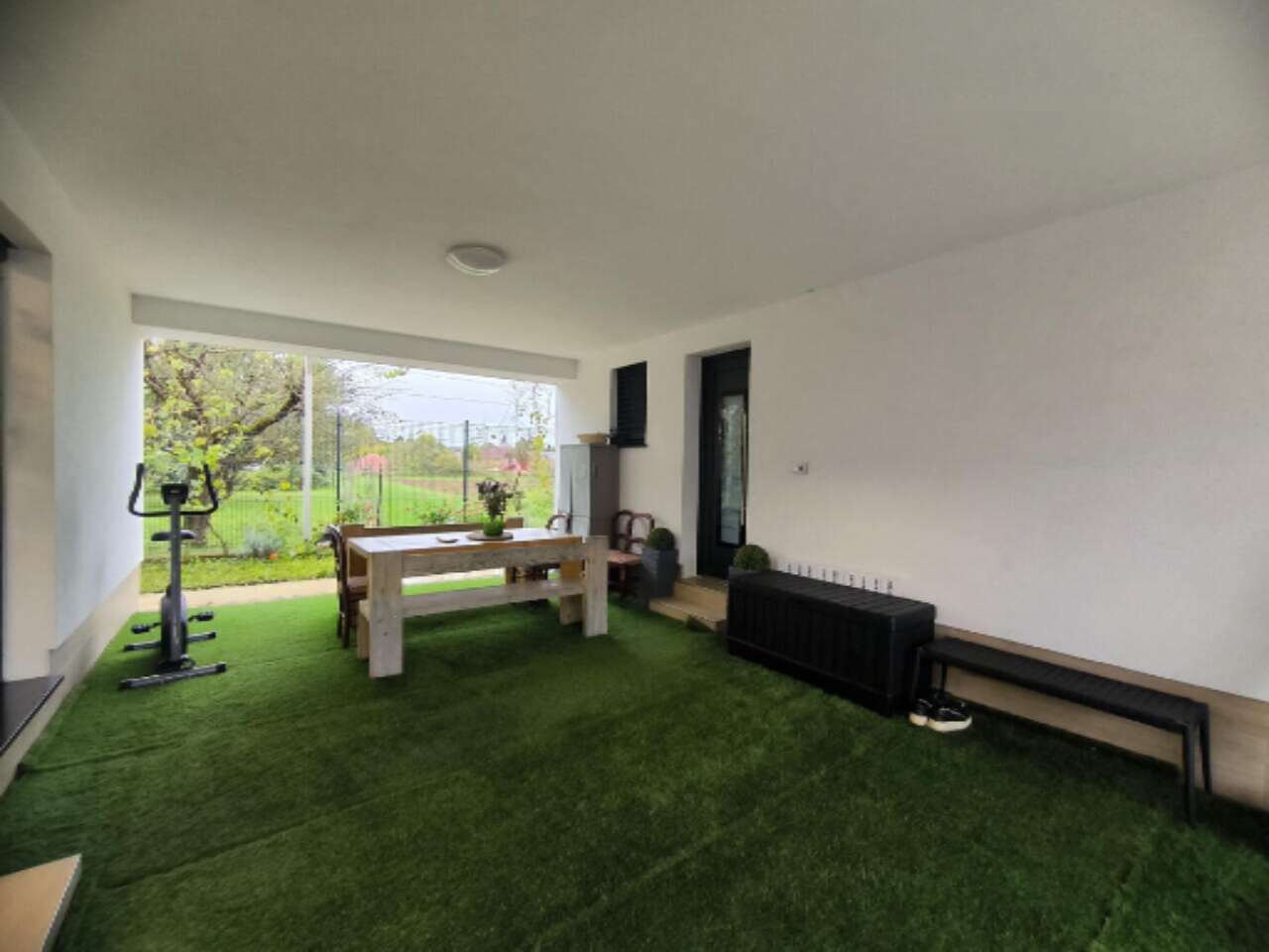 Также дом расположен в окружающей зеленью зоне, что предоставляет великолепные возможности для прогулок, бега и велосипедных поездок. Рядом имеются детский сад на расстоянии 100 м и школа в 1,8 км, а также теннисные корты и обширные рекреационные маршруты.