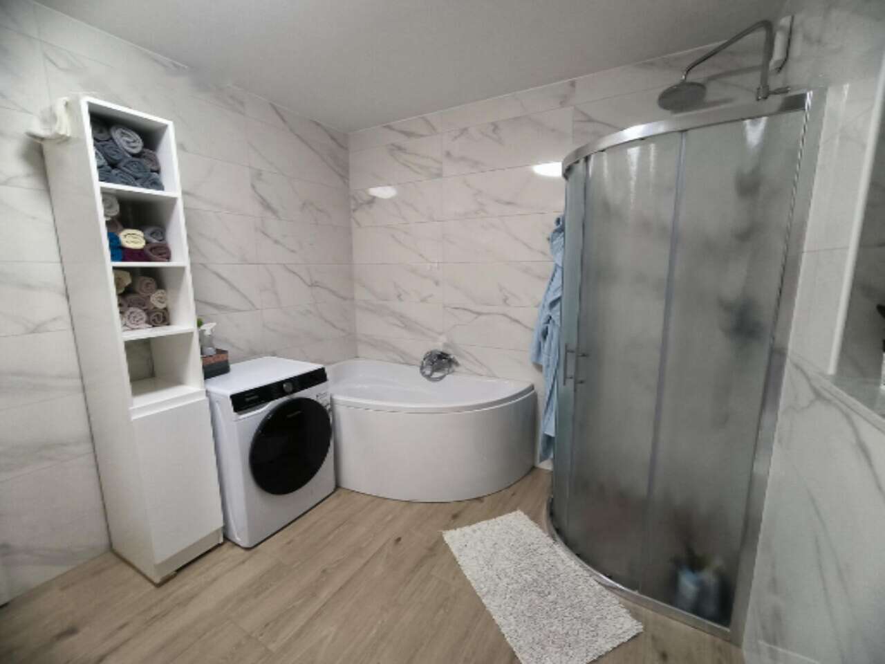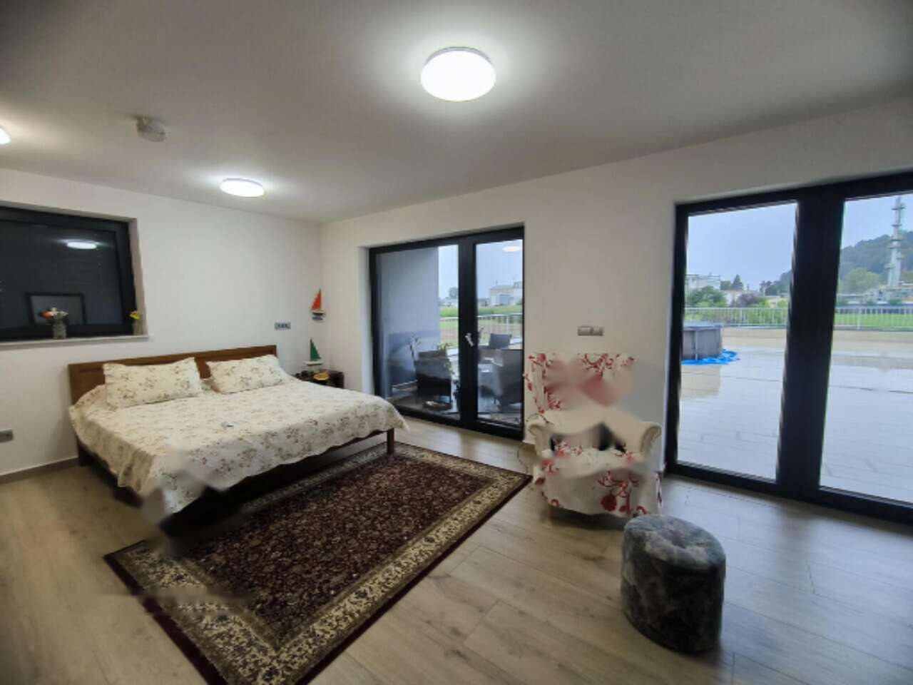 Представляю великолепный современный дом в живописной местности Чрнуче, возведённый в 2019 году. Это просторное строительство с общей площадью в 252 м², находящееся на участке размером 2732 м². Дом, состоящий из двух этажей, имеет удобный доступ ко всей городской инфраструктуре и находится в непосредственной близости от автомагистрали. Будучи последним на улице, он обеспечивает высокий уровень уединения.