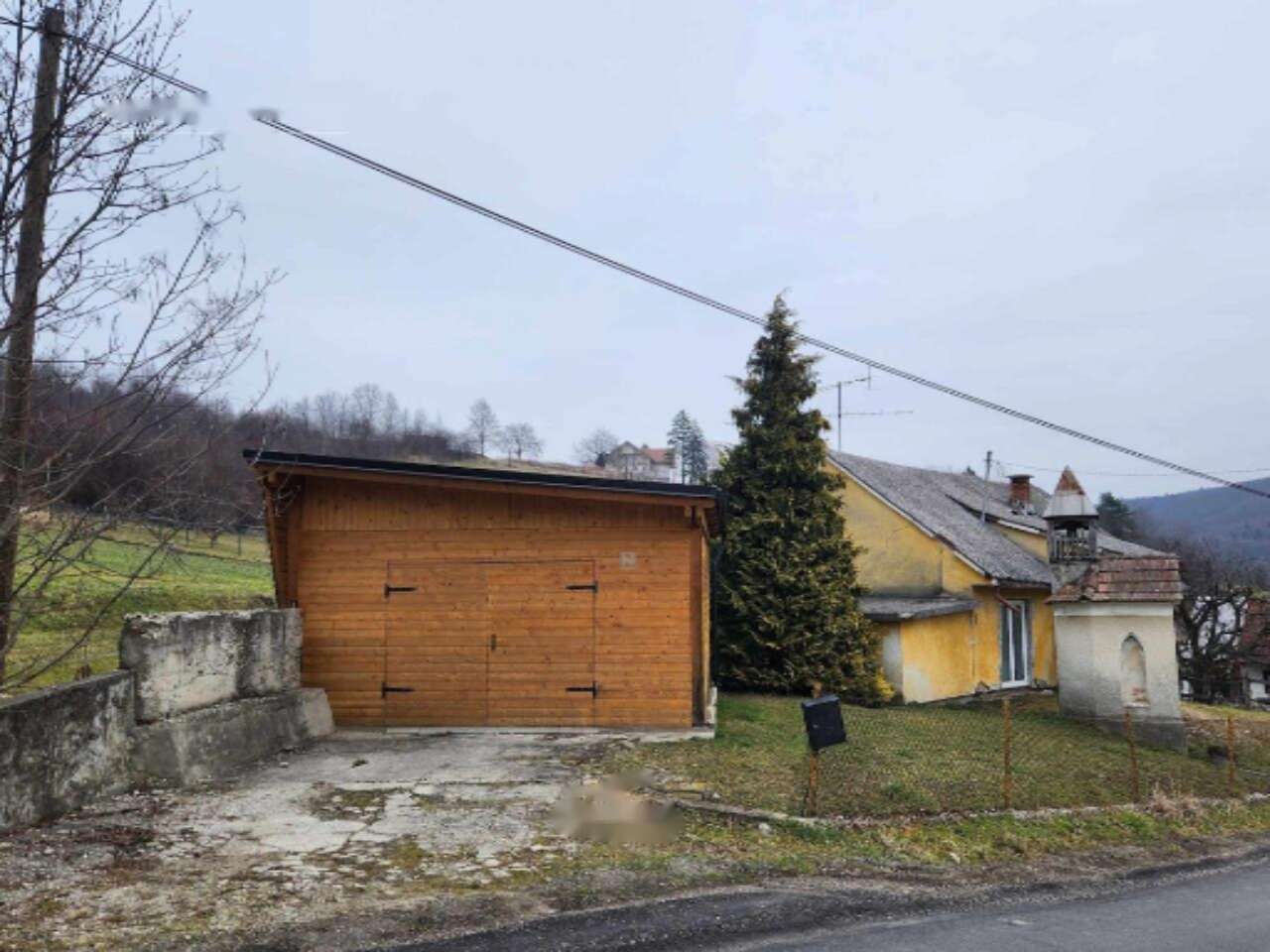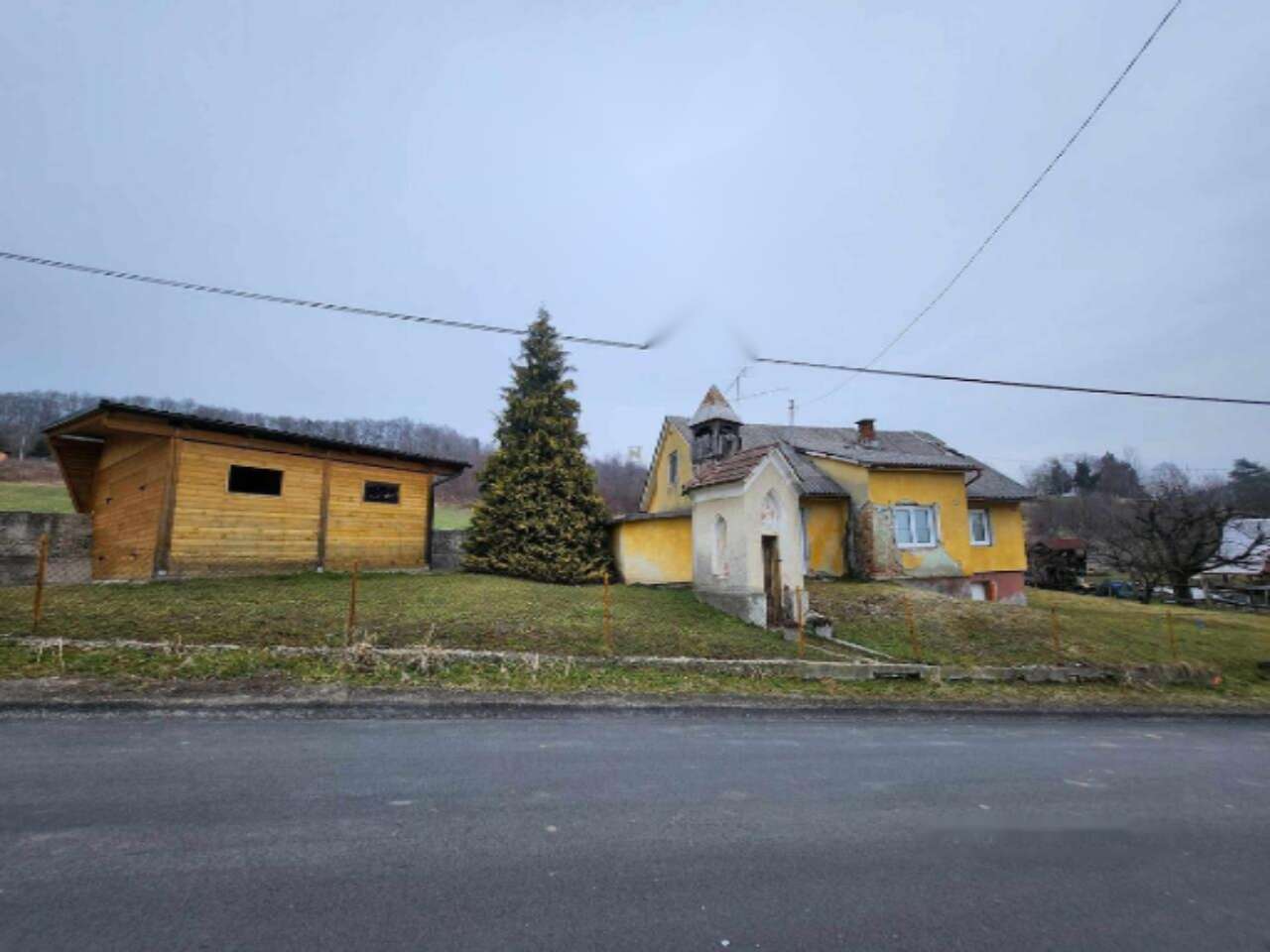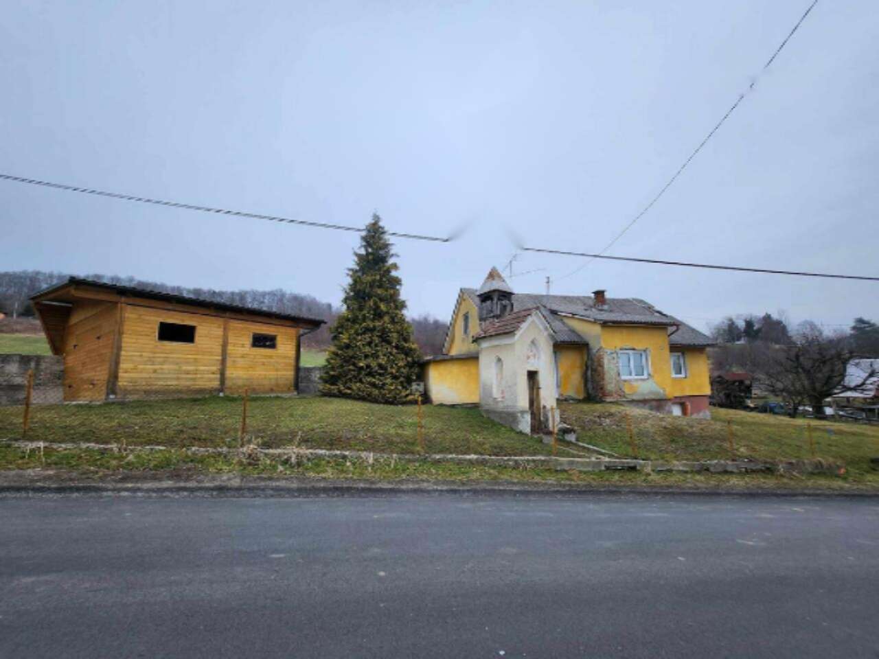 На территории также находятся три сооружения, включая сам дом и нуждающуюся в сносе хозяйственную постройку. Она окружена сельскохозяйственными участками. Земля обнесена забором и облагорожена, на ней растут фруктовые деревья и овощные культуры. Подведены все необходимые коммуникации - электричество и водоснабжение, а также установлена канализационная яма. К участку ведет широкая асфальтированная дорога с прямым выездом на главную трассу.