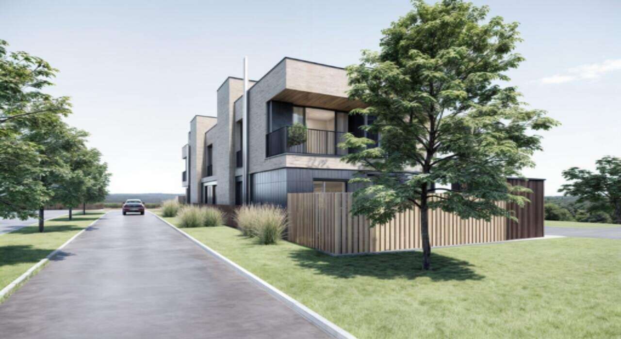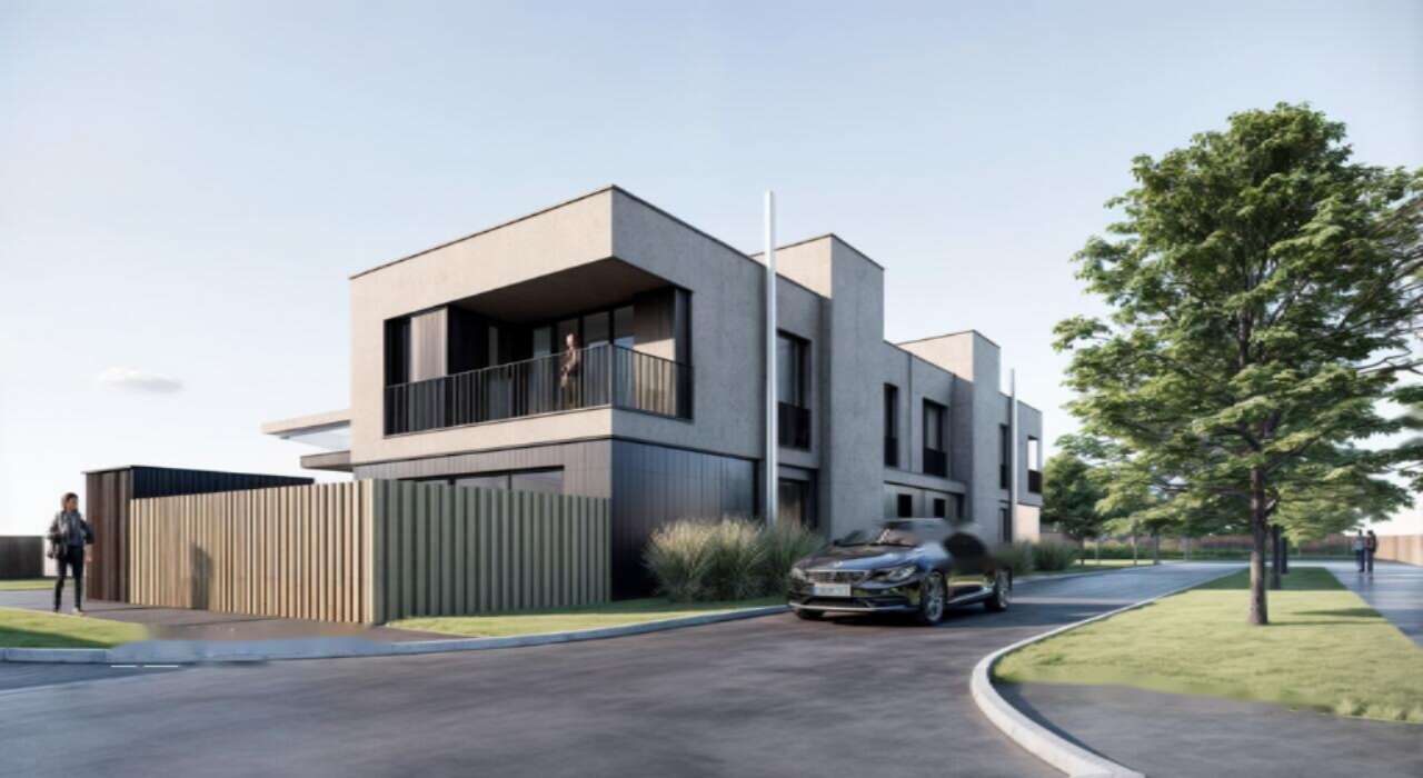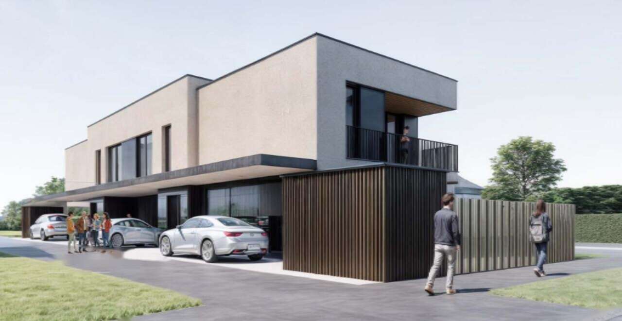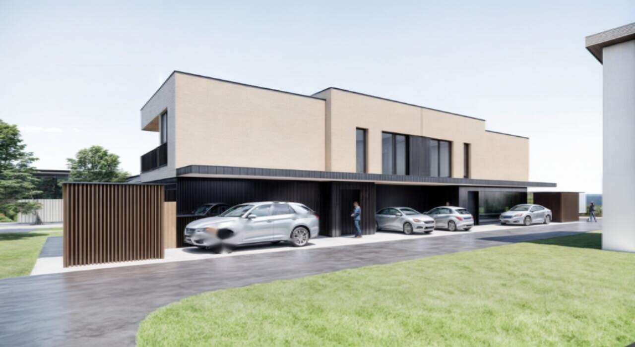 Территория дома обустроена по высшему классу: к дому ведут аккуратные каменные дорожки, а каждая часть дома имеет собственный гараж и три выделенных парковочных места. Также предусмотрена возможность установки зарядной станции для электромобилей. Для тех, кто ведет активный образ жизни, рядом с домом имеется помещение для хранения велосипедов и хозяйственный сарай.