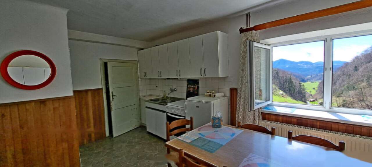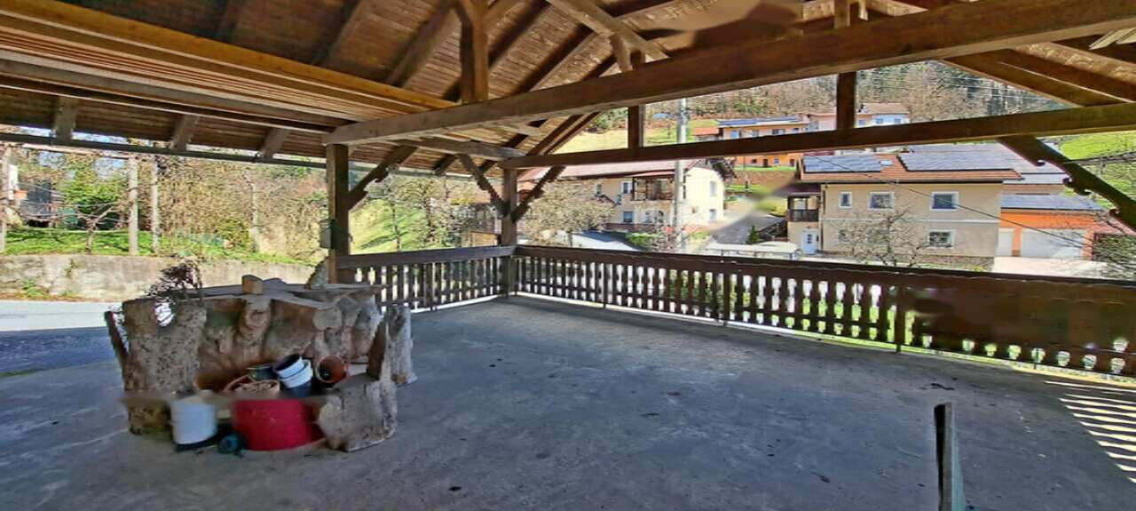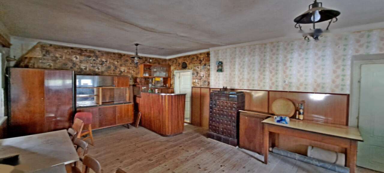 Особое внимание привлекает двухквартирный дом площадью 190 м² с двумя отдельными входами. Эта постройка соединяет этажи деревянной лестницей и имеет подвал. Ранее первый этаж использовался как гостевой дом и туристическое жилище, что предоставляет дополнительные коммерческие перспективы. Дом, построенный в 1922 году и реконструированный в 1975 году, готов к проживанию, хотя требует обновления. Перед домом располагается просторная крытая терраса.