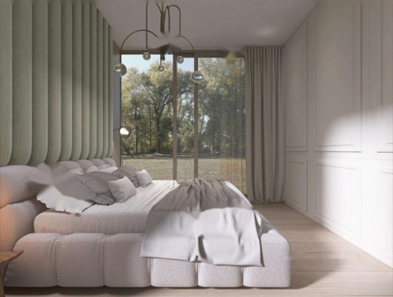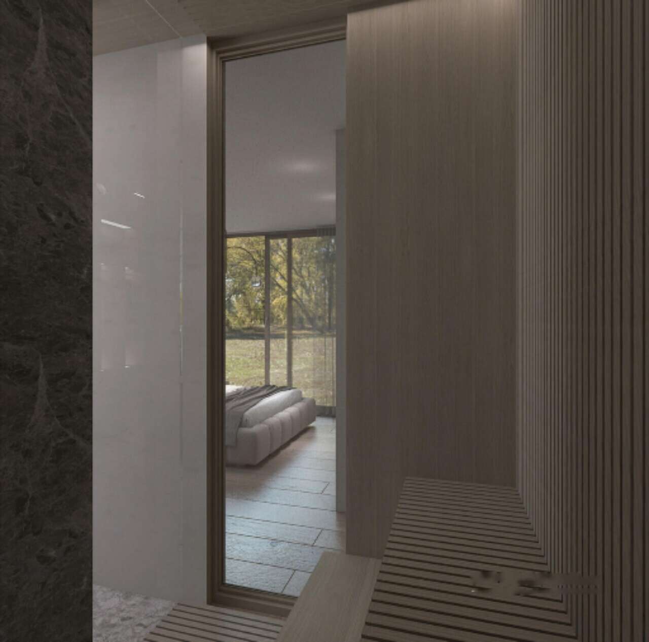 Второй этаж: главная спальня олицетворяет роскошь и включает в себя собственную ванную, сауну и гардеробную. Также здесь разместились две детские комнаты с ванной и хозяйственная зона.
