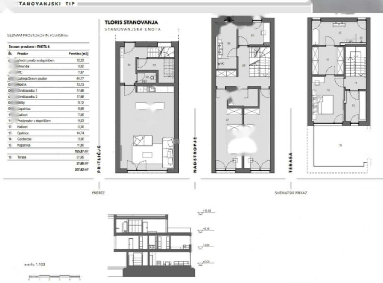 Дом оборудован центральным газовым отоплением с системой тёплых полов и централизованной вентиляцией, все коммуникации уже подключены. Перед домом предусмотрены два парковочных места с барьером, а путь в центр Любляны займет всего несколько минут—это всего 2,5 км. В окрестностях есть школы, детские сады, магазины, а также удобный подъезд к автотрассе.