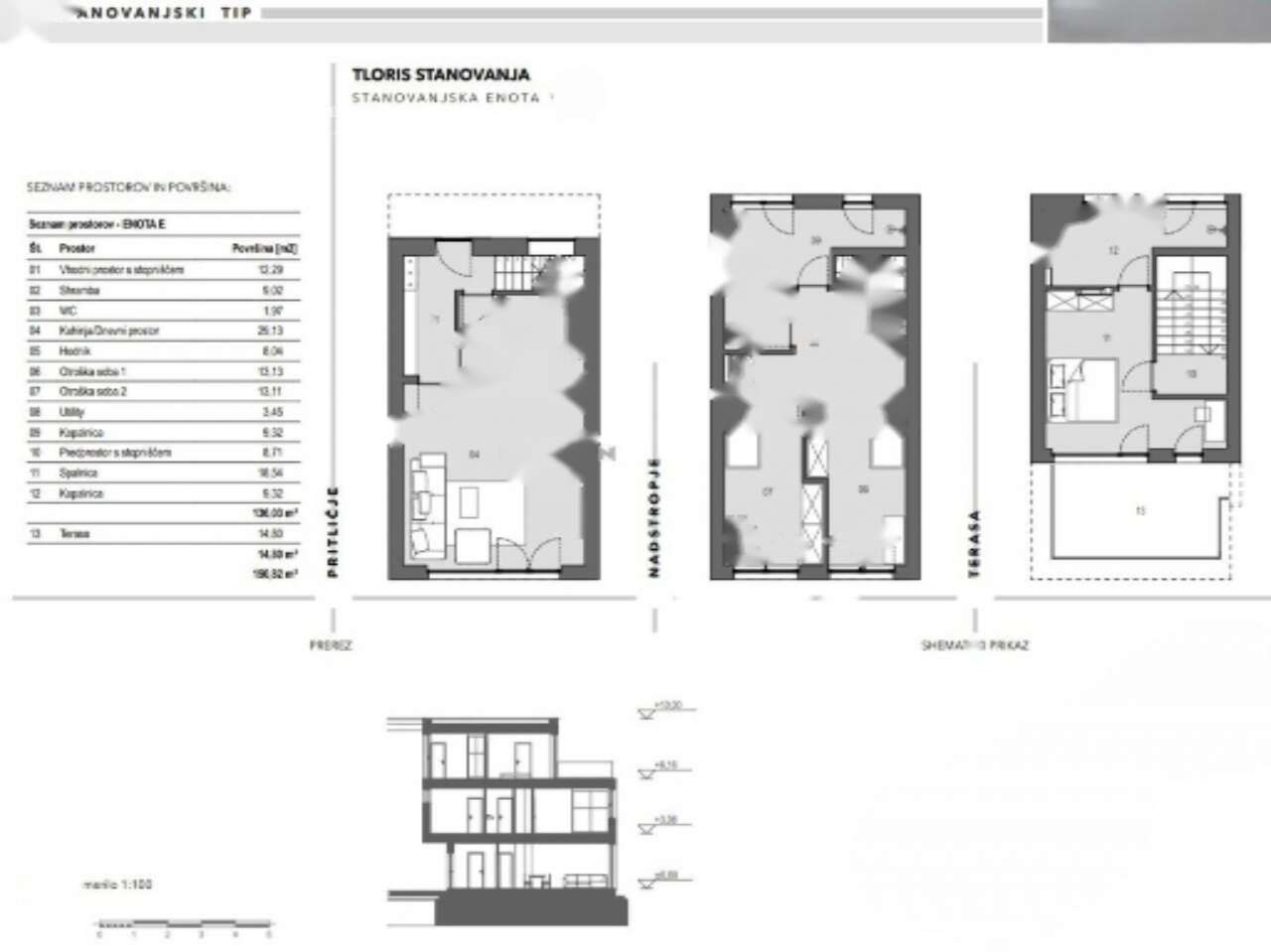 Площадь дома составляет 136,03 м², дополнительно оснащена просторной террасой на крыше размером 14,80 м² и стоит на участке площадью 170,97 м². Архитектурное решение дома предусматривает: