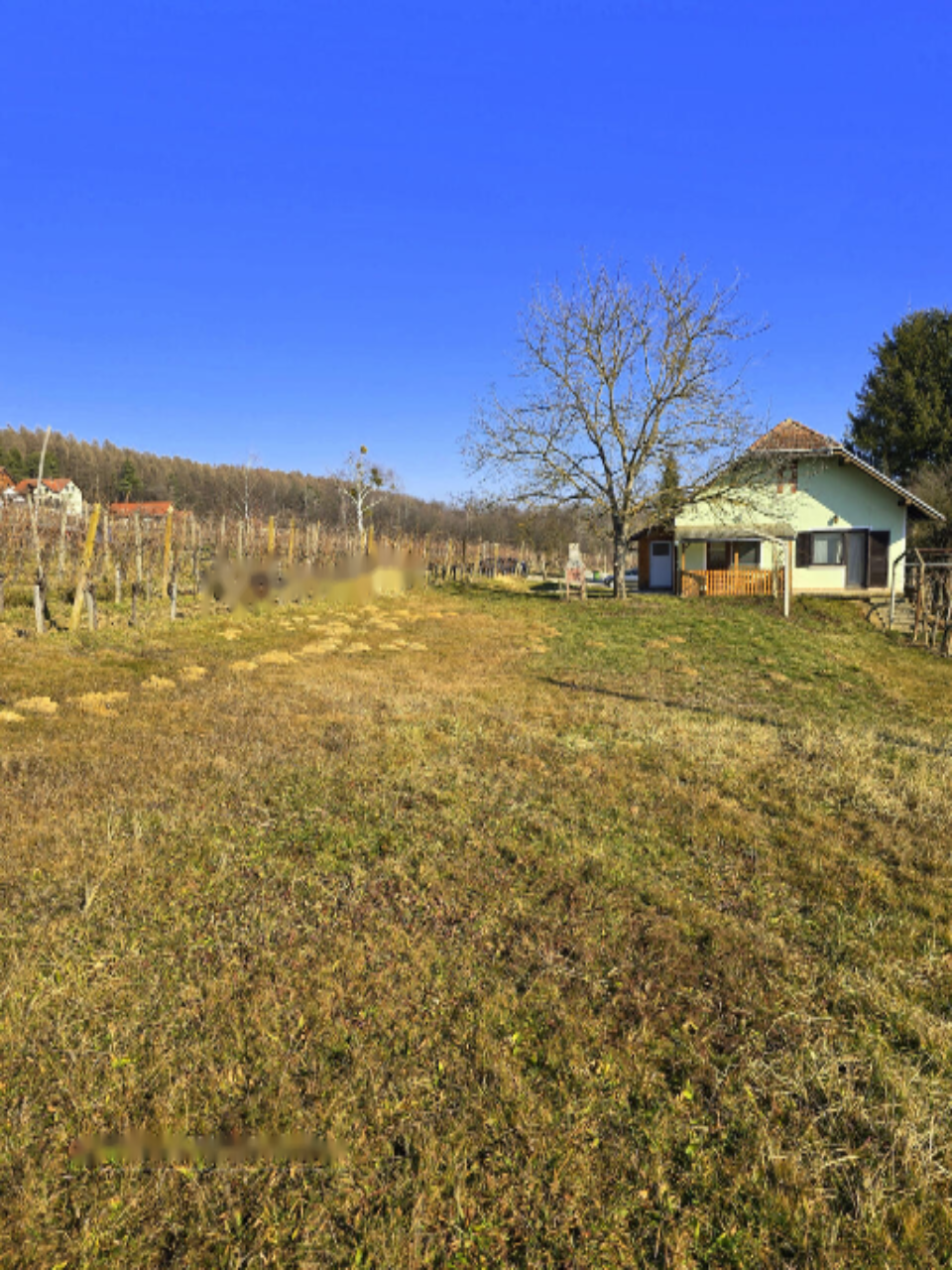 Земляной участок размером 4.363 м², из которых 755 м² заняты постройками, включает также сельскохозяйственные земли и лесные угодья. Участок немного склонен. Дом с террасой площадью 63,20 м² предлагает жилую зону в 29,70 м², подвал на 26,40 м² и террасу размером 7,10 м².