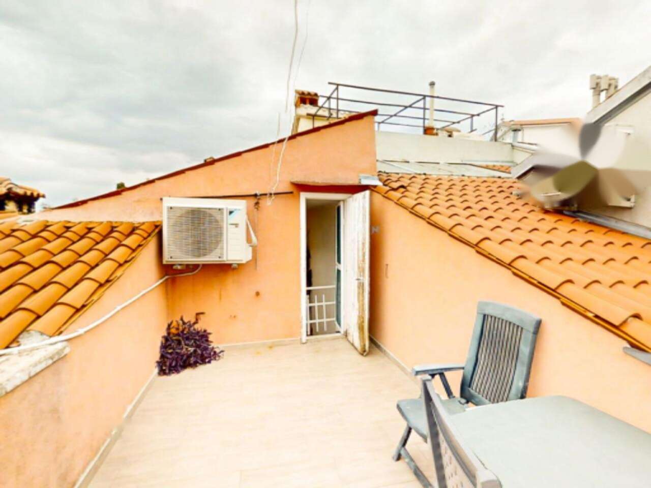 Из мансардной террасы открывается частичный вид на море. Квартира также располагает доступом к общей кладовой/велосипедной комнате на первом этаже, а также к большой кладовой на чердаке площадью около 10 м².