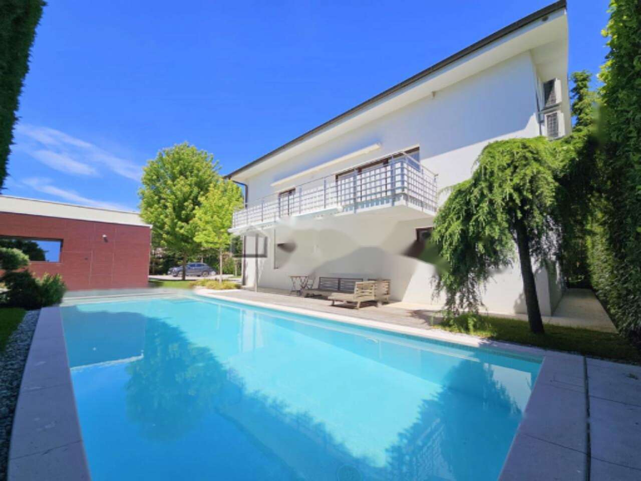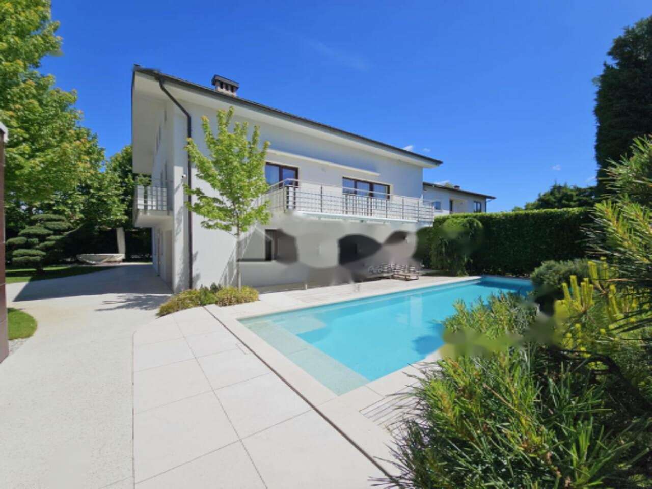 На территории вокруг дома разбит красивый сад, дарящий полную приватность, рядом с которым находится прямоугольный бассейн размерами 13,5 м на 4,5 м и глубиной до 1,85 м, с подогревом от теплового насоса. Первый этаж соединяется с садом, позволяя проводить мероприятия и организовывать встречи, а дополнительные зоны обеспечивают возможности для крупных приемов. Поверхности вокруг дома выложены отполированным бетоном.
