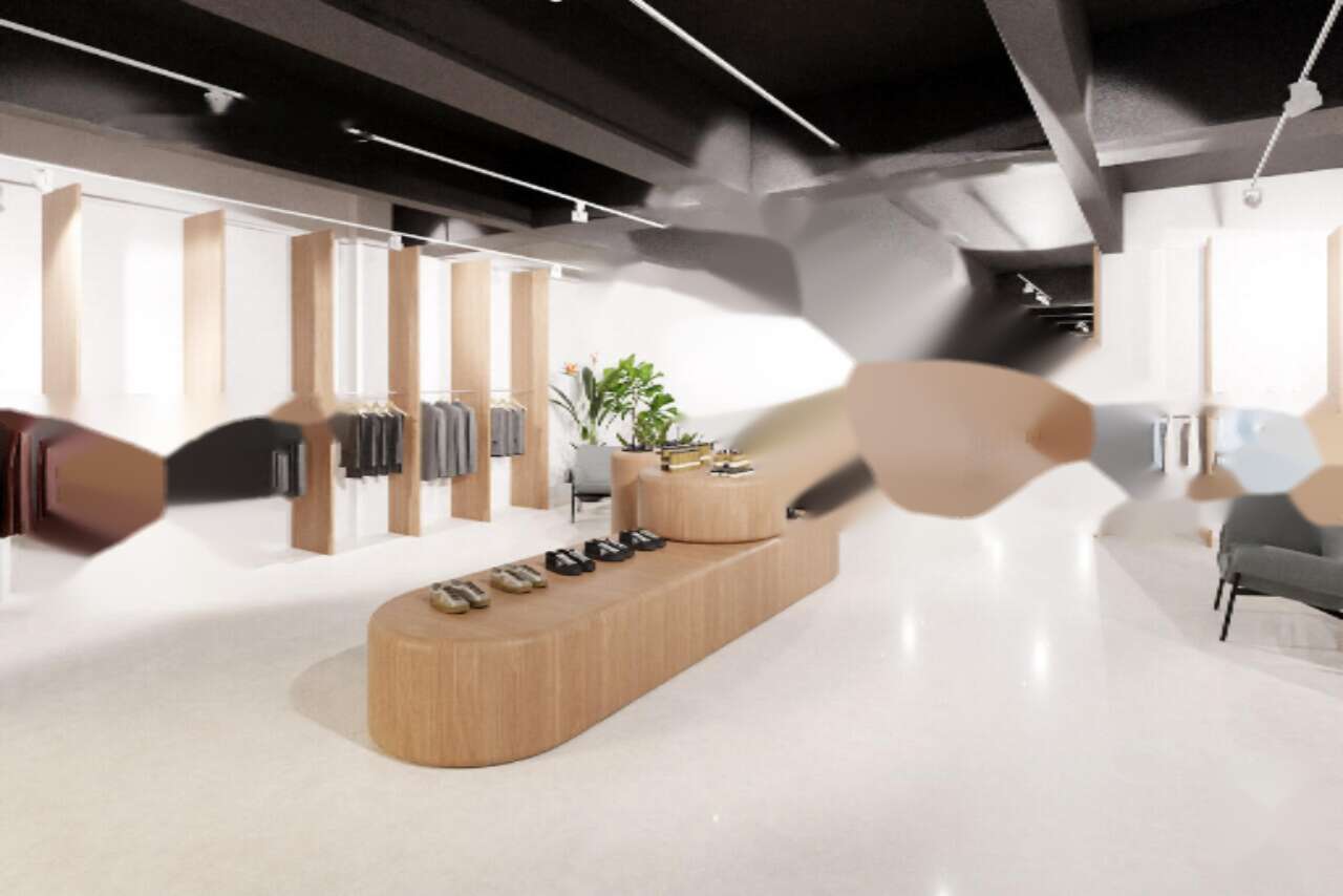 • На первом уровне находится большой выставочный зал с витринными окнами, офисы и зона хранения.