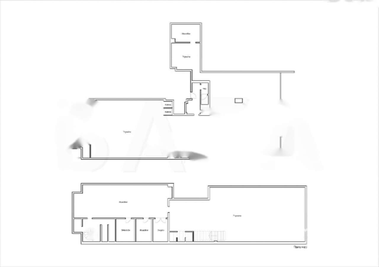• Подвальный этаж включает торговую зону, складские помещения, мини-кухню, разделенные санитарные узлы и гардероб.