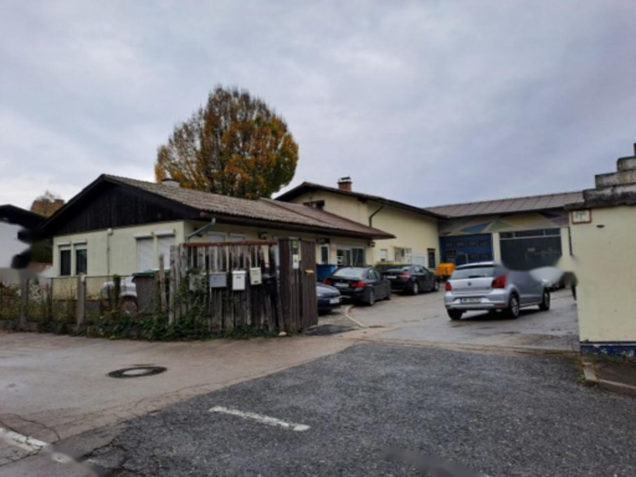 Здание включает в себя цокольный этаж (K), первый этаж (P) и частично обустроенный мансардный уровень (M). В цоколе располагаются складские площади, на первом этаже - мастерские с частично увеличенной высотой потолков и офисные комнаты. Мансарда предоставляет неиспользуемые помещения с возможностью их обустройства. Рядом имеется навес, пригодный для стоянки транспорта или складирования на открытом воздухе.