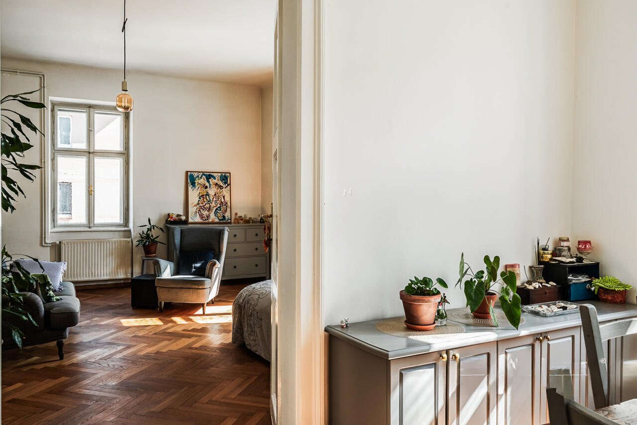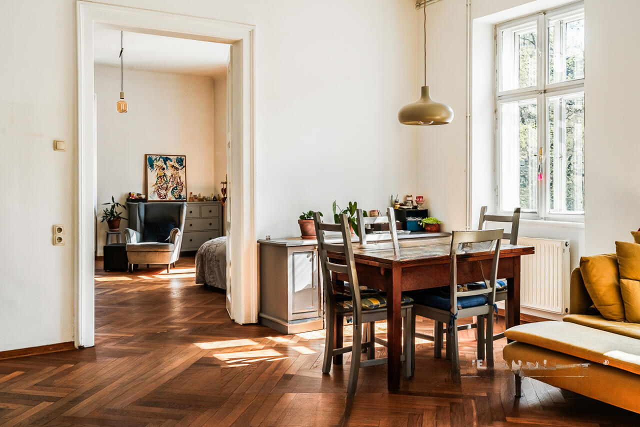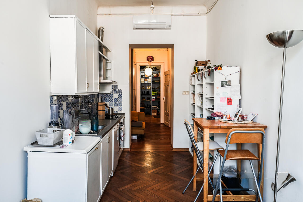 На улице Прешернова в сердце Любляны предлагают уникальную возможность покупки исторических апартаментов площадью 105,5 м². Квартира располагается на втором этаже здания без лифта и в 2016 году была частично обновлена, сохраняя аутентичные архитектурные детали.