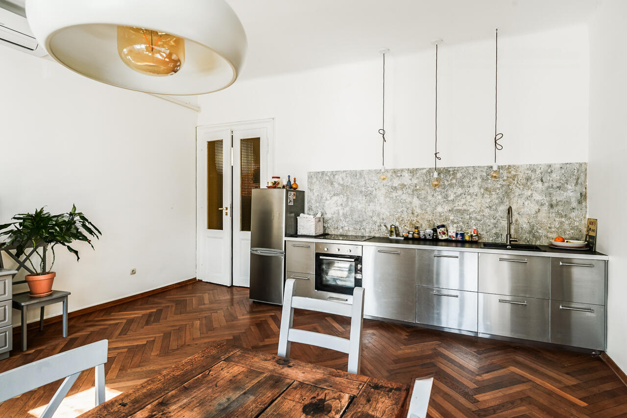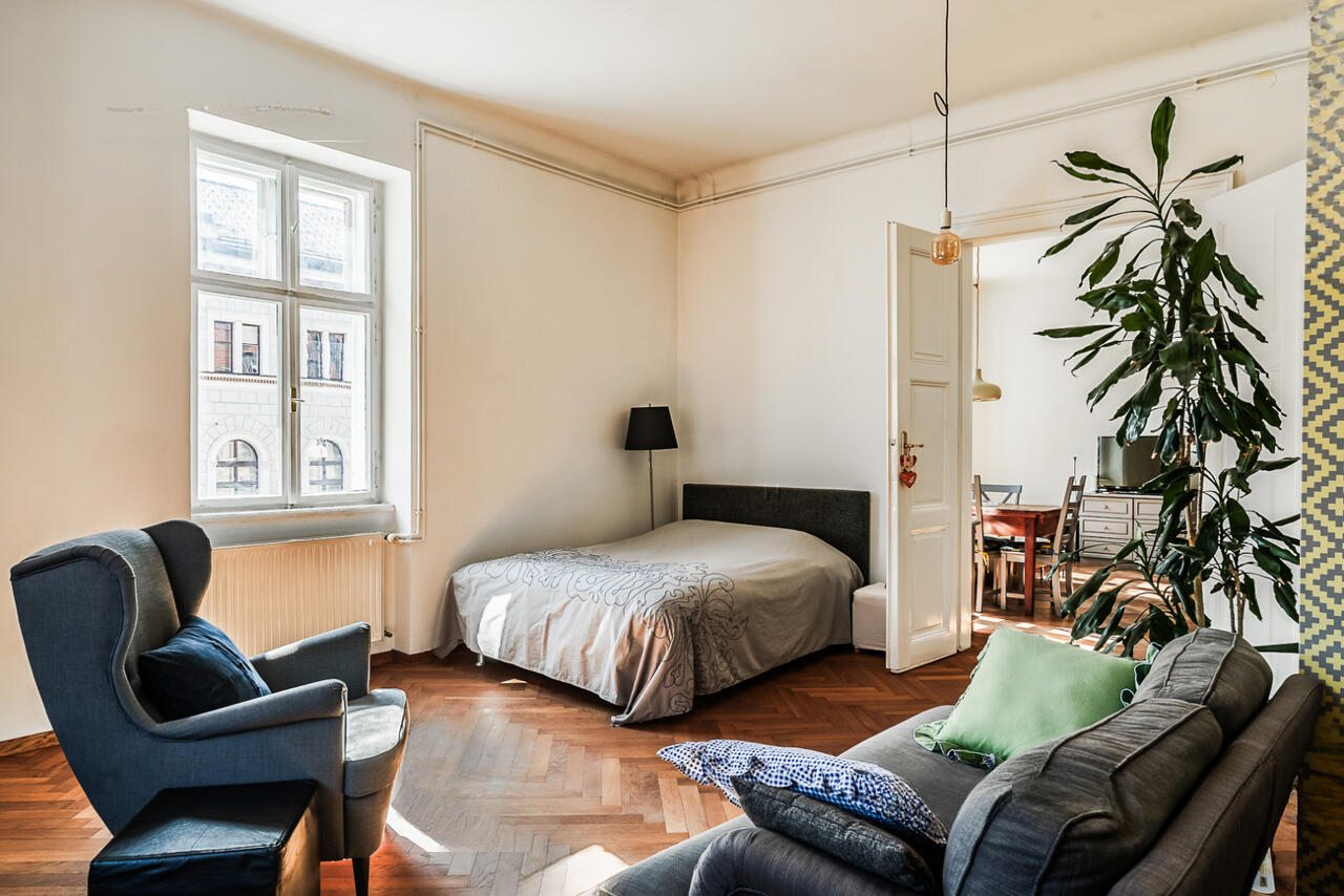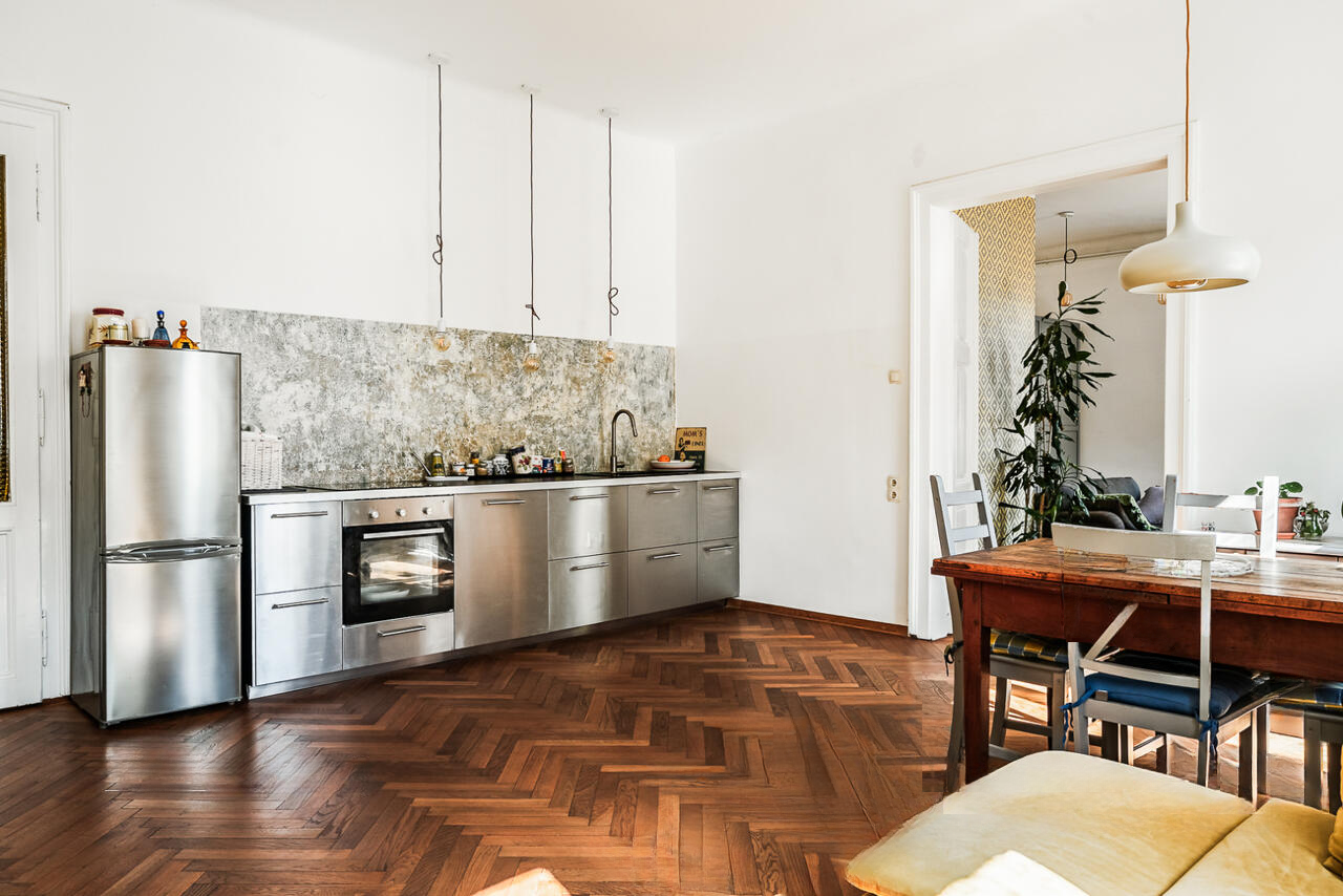 На улице Прешернова в сердце Любляны предлагают уникальную возможность покупки исторических апартаментов площадью 105,5 м². Квартира располагается на втором этаже здания без лифта и в 2016 году была частично обновлена, сохраняя аутентичные архитектурные детали.