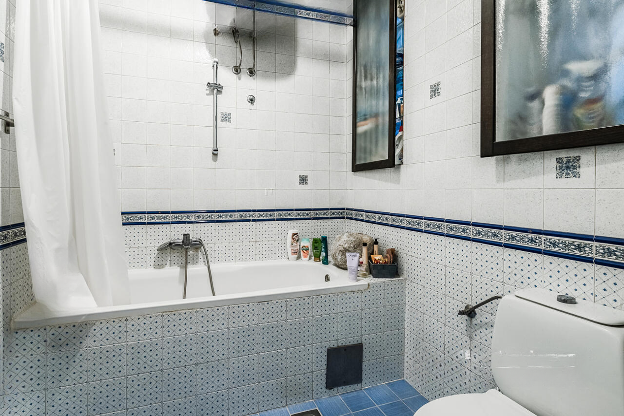 Просторное жилье представляет собой следующее: обширный коридор, кухня, оборудованная всем необходимым, с обеденной зоной, светлый зал, две большие спальни и две ванные комнаты. Высокие потолки и прекрасно сохранившийся паркет придают пространству элегантность и комфорт.