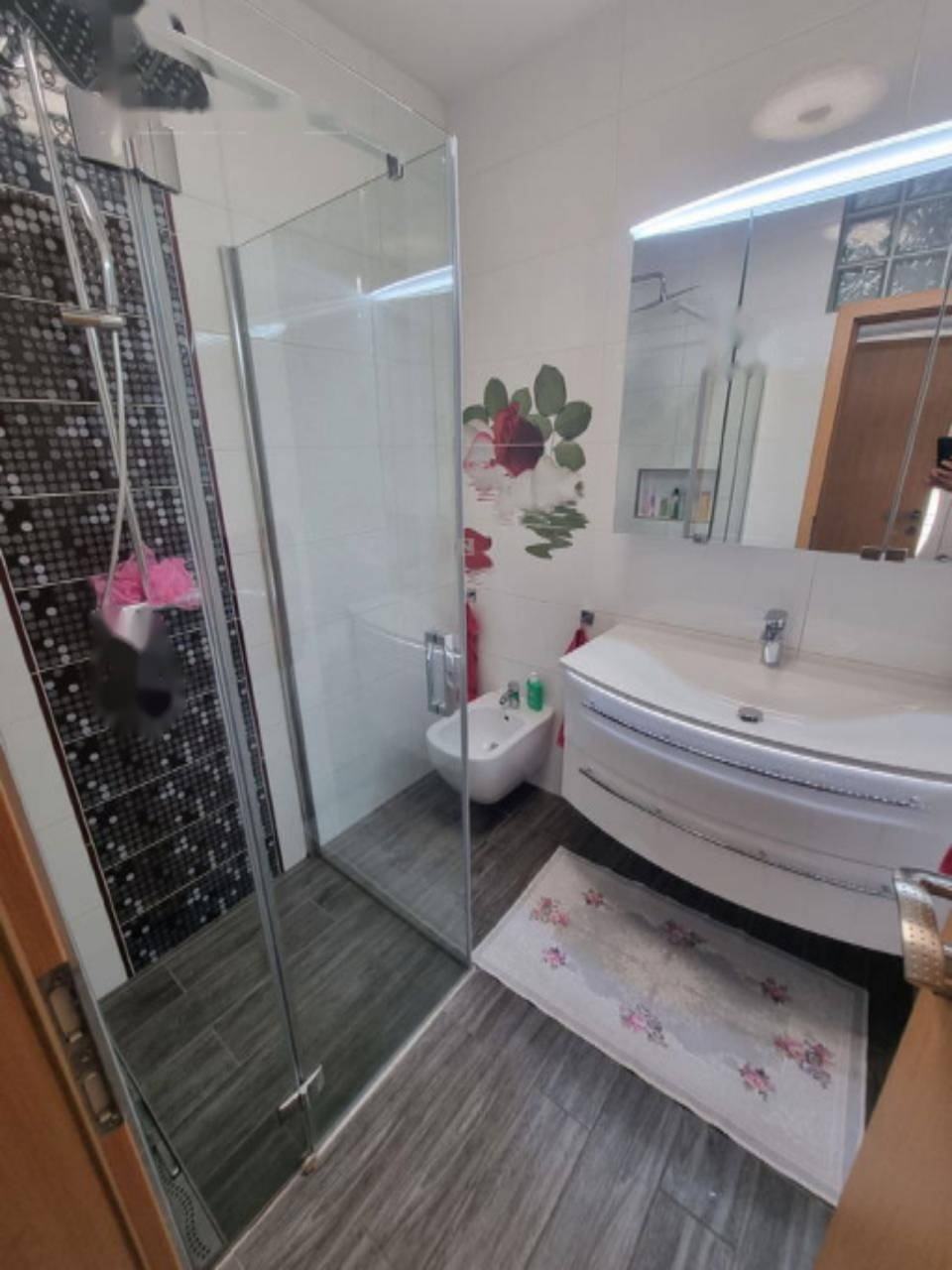 В продаже трёхкомнатная квартира с просторной планировкой, расположенная на первом этаже двухэтажного здания в районе Бертоки, всего в 4 км от центра Копера. Дом, возведённый в 1900 году, прошёл капитальную реконструкцию в 2019 году, включая установку электрических ролет, противомоскитных сеток и жалюзи, а также монтаж новой кухни. Управлять всеми электрическими приборами и освещением возможно через Wi-Fi.