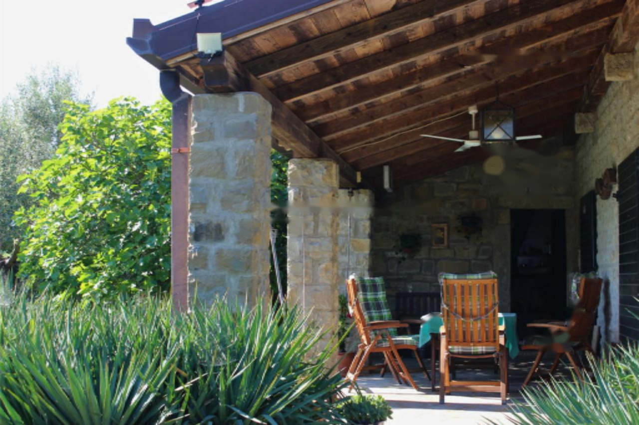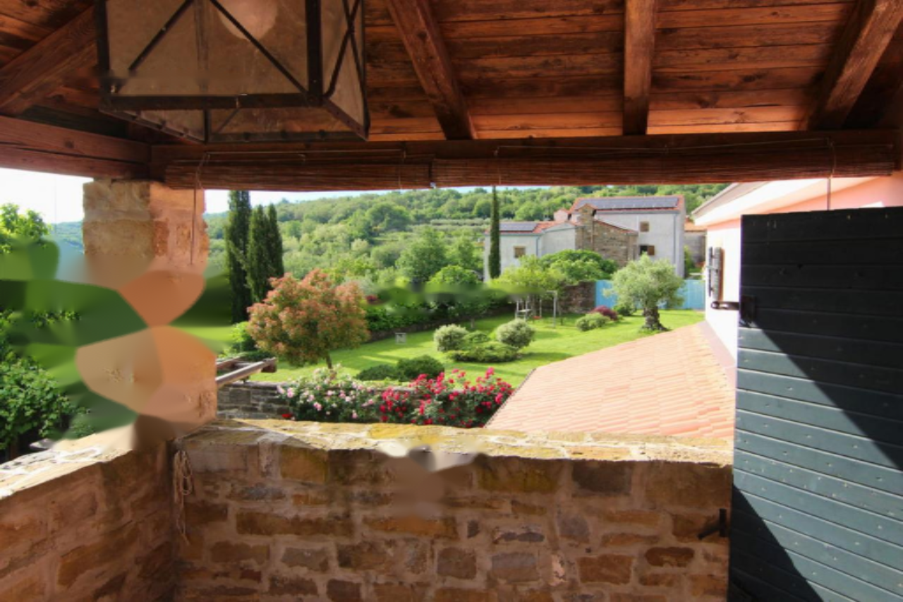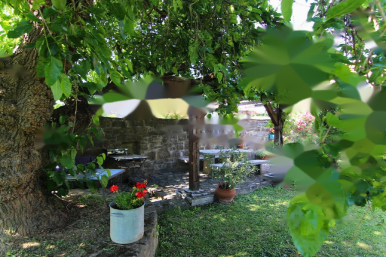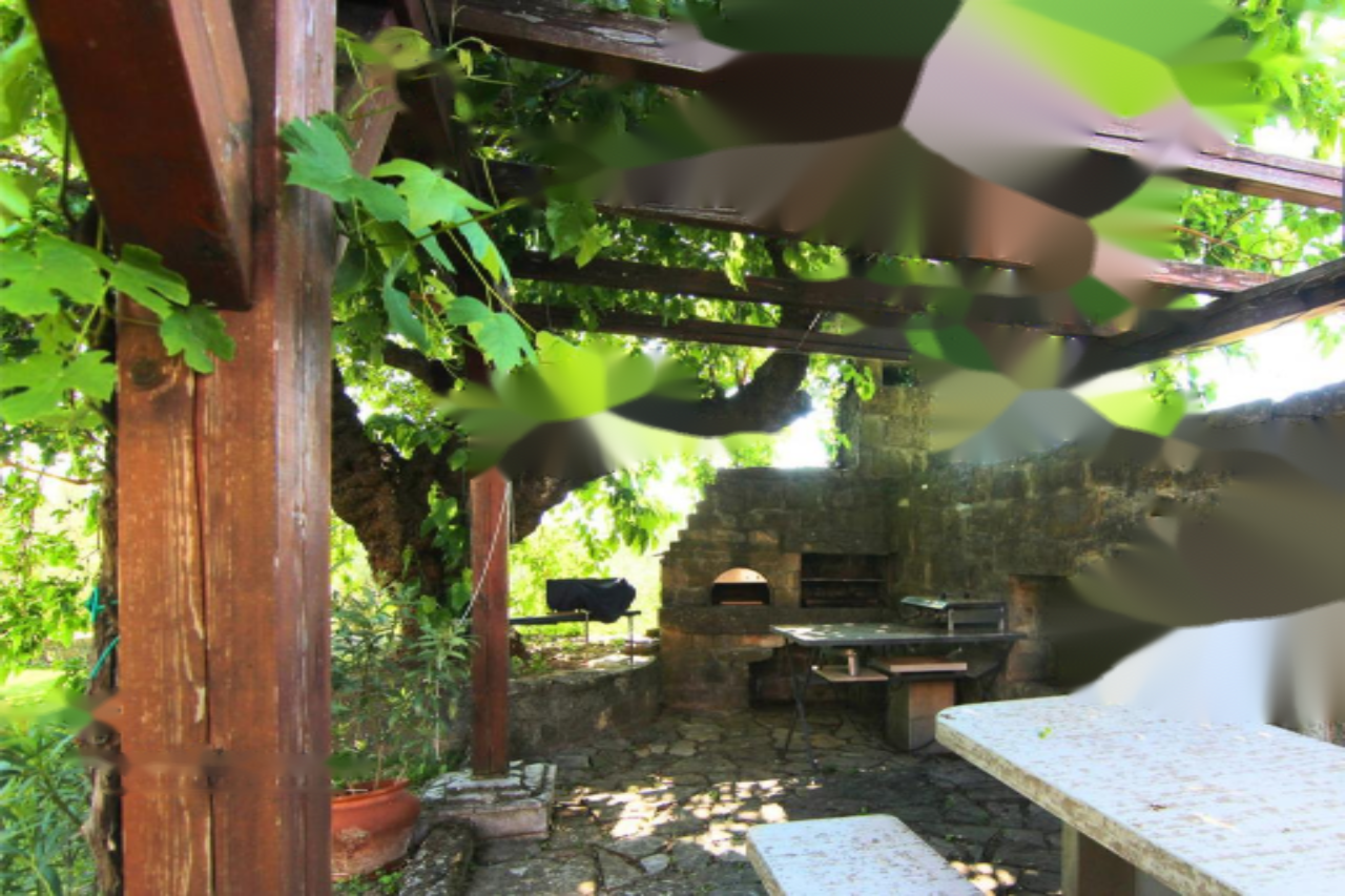 На облагороженной территории находятся бассейн размером 8х4 метра, просторный сад с аккуратными газонами и цветниками, огород с ароматными травами и фруктовыми деревьями, открытая кухня с дровяной печью и барбекю, а также четыре парковочных места перед домом.