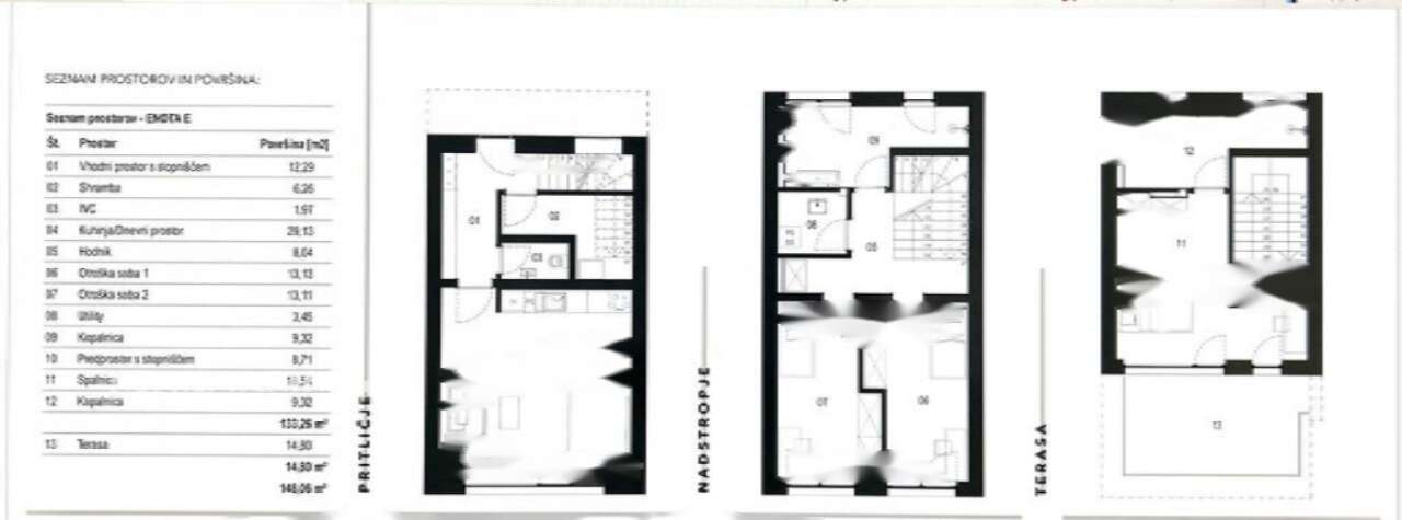 В продаже новостройка с террасой в округе Вич, Любляна. Общая площадь составляет 148,06 м² и расположена на участке в 170,97 м². Здание включает три уровня: первый этаж и два над ним.