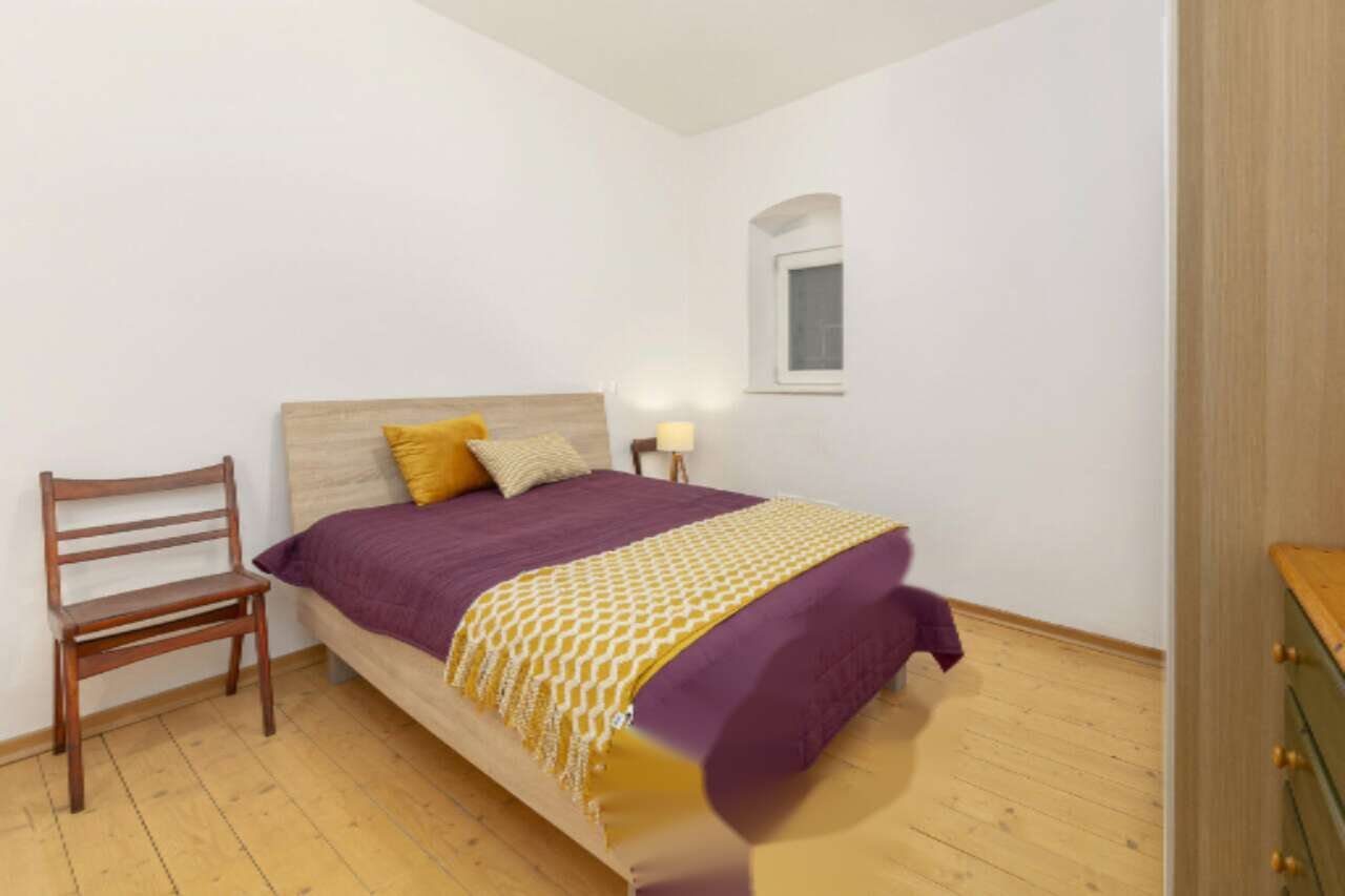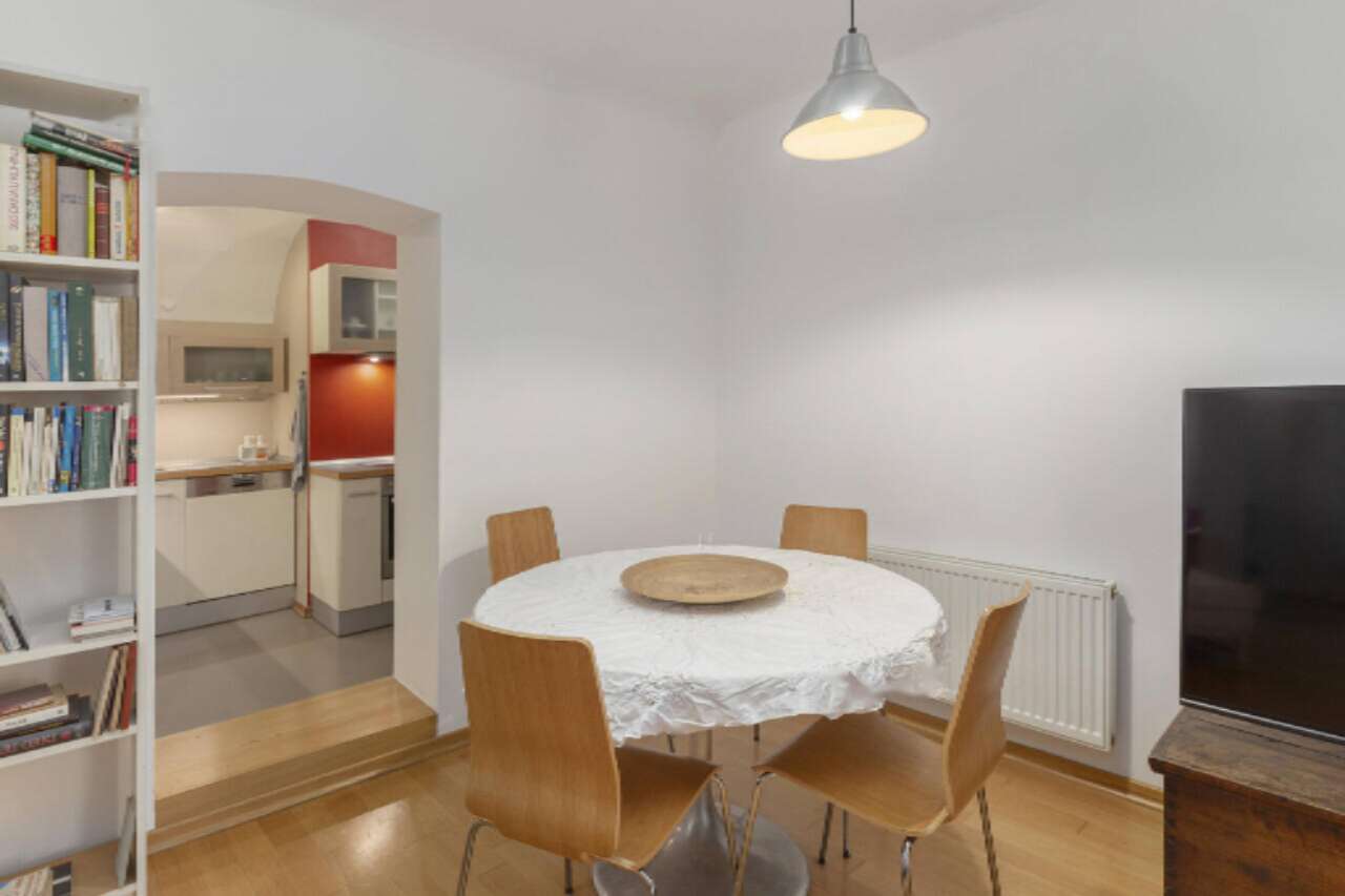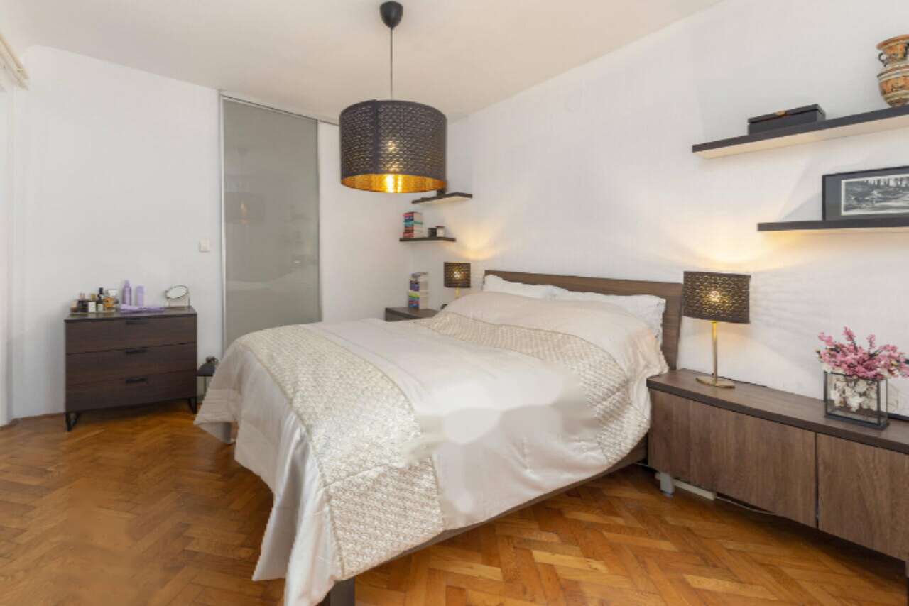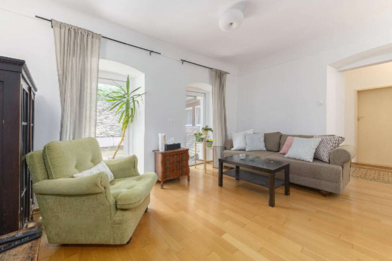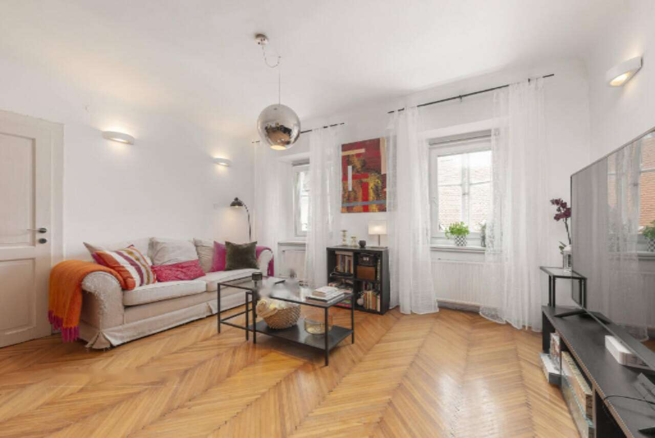 Предлагается просторная и великолепная квартира в сердце исторического центра, на одной из самых живописных улиц — Горний Трг. Квартира располагается на всём втором этаже здания и при необходимости может быть легко возвращена из двух отдельных частей в единое обширное пространство. В 2005 году здесь была проведена капитальная реновация, включая замену всех коммуникаций и окон.