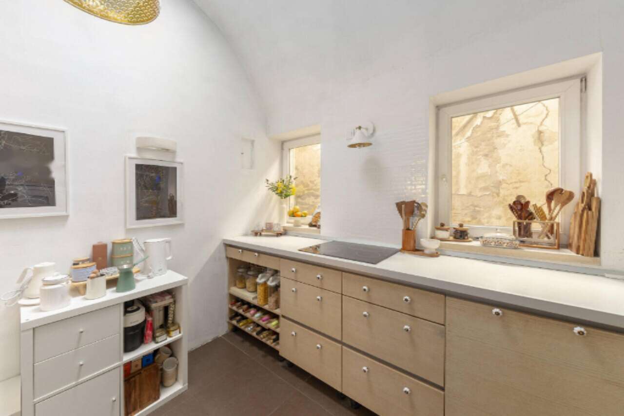 К квартире в подвале прилагается кладовая свыше 12 м². Продается частично меблированной: остаются обе кухни, одна из спален и гардеробная. Отопление обеспечивается газовым котлом, радиаторы. Высокие потолки добавляют ощущение простора и освещенности.