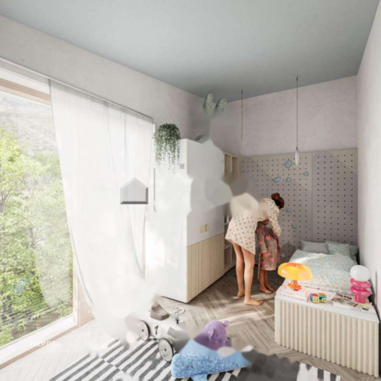 Второй этаж включает в себя главную спальню с выходом на балкон и собственным гардеробом, а также кабинет, который может служить гостевой комнатой. На третьем этаже расположены детские спальни, ванная и прачечная, предоставляя детям все необходимое для учёбы и игр.