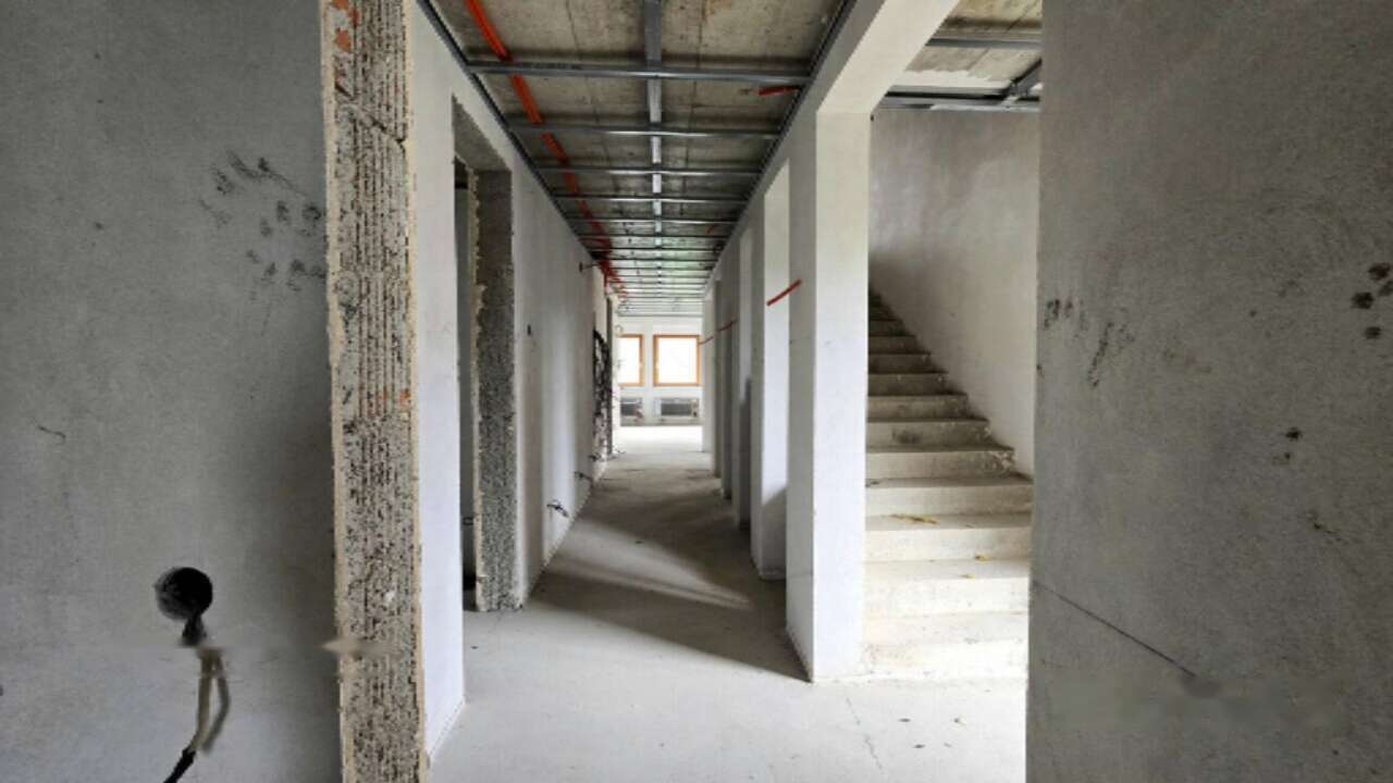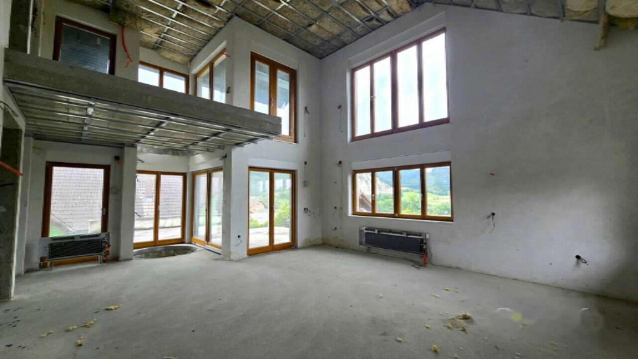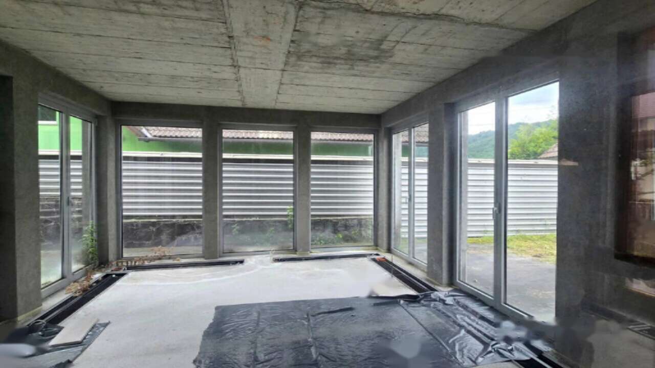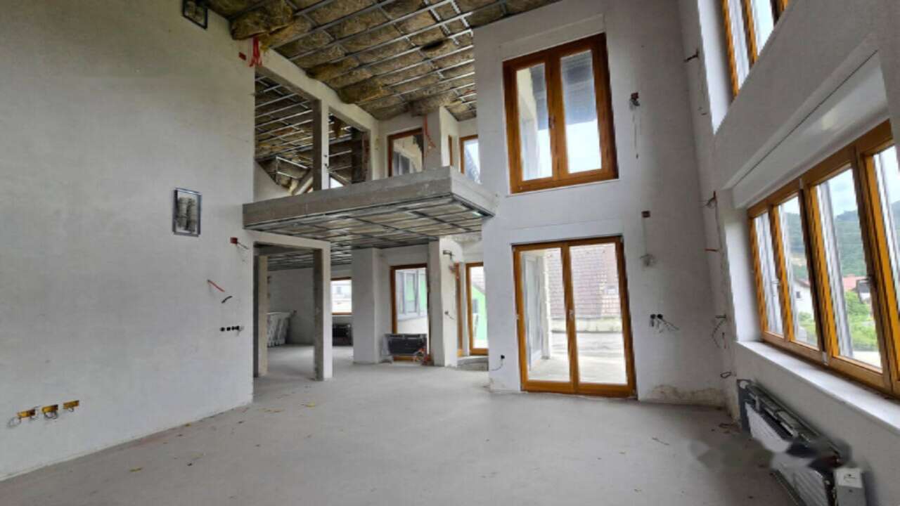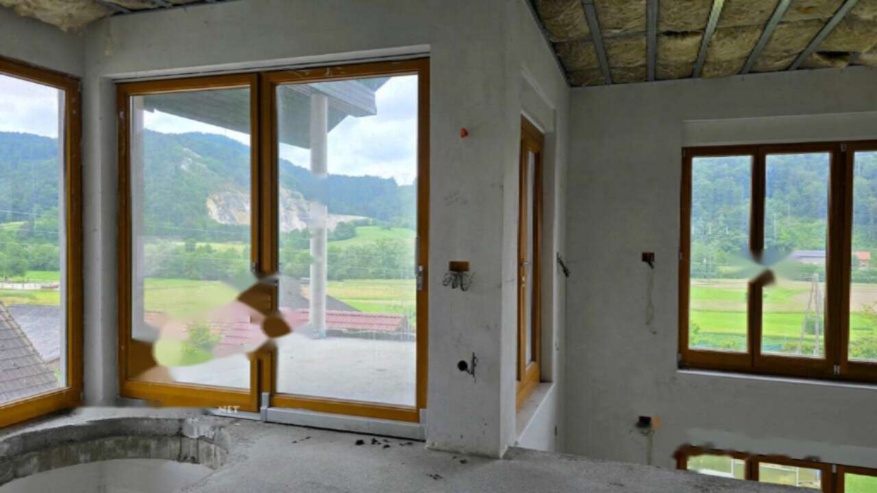 Постройка дома завершена в 2002 году и сейчас он предлагается в третьей расширенной стадии строительства. Деревянные окна и двери высокого качества гармонично дополняются балконными окнами и автоматическими гаражными воротами. Дом оснащён утеплённой крышей и завершённым фасадом. Внутри уже проведены коммуникации и установлены конвекторы для обогрева и охлаждения.