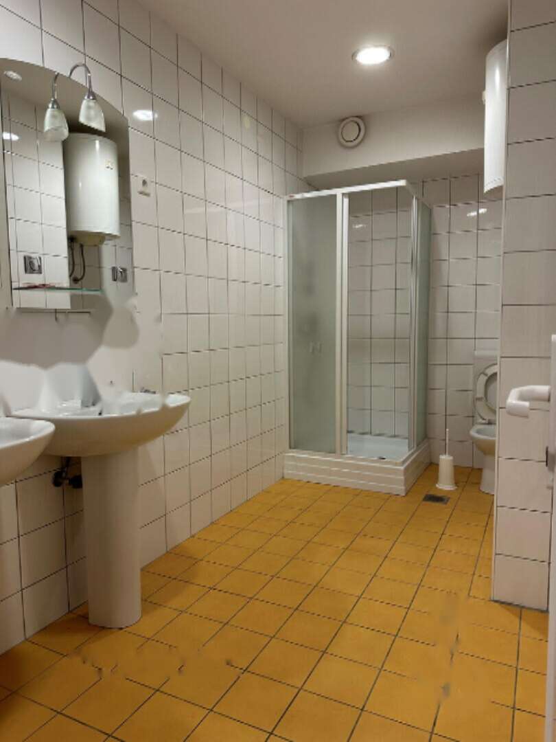На продажу выставлено коммерческое помещение комбинированного типа с общей площадью 445 м², расположенное в районе Стегне. Построенный в 1981 году, объект был модернизирован в 2011 году. Здание состоит из трёх уровней: на первом этаже размещены офисные помещения, на втором - жилая зона, а подвальный этаж используется для складских нужд, облегчая доступ благодаря имеющейся грузовой площадке.