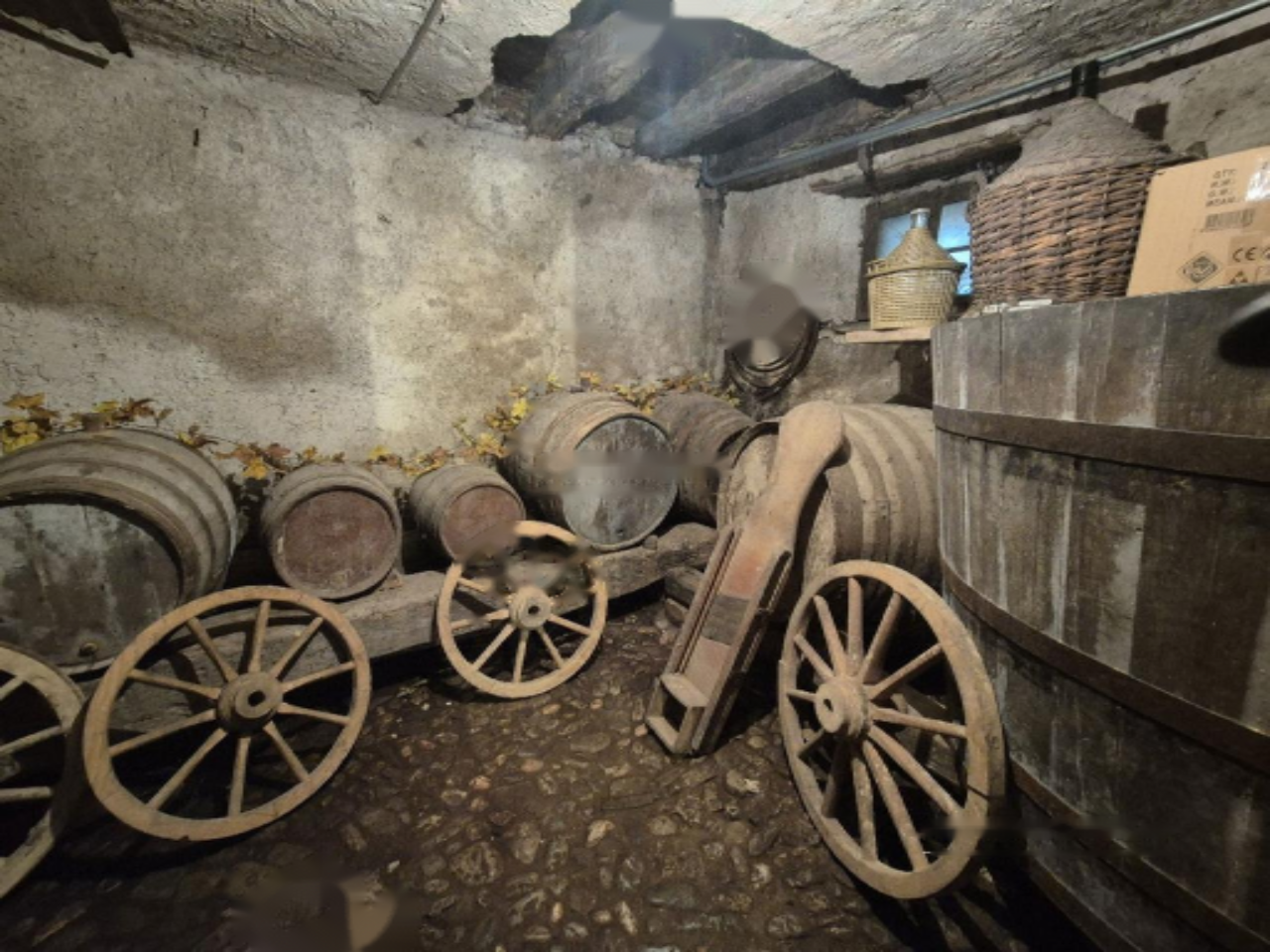 На входе в дом расположена терраса, соединенная с хозяйственным строением, которое в настоящее время задействовано как столярная мастерская. Одним из преимуществ объекта является просторная территория, наличие винного погреба, кладовых, большого гаража и асфальтированной подъездной дороги.