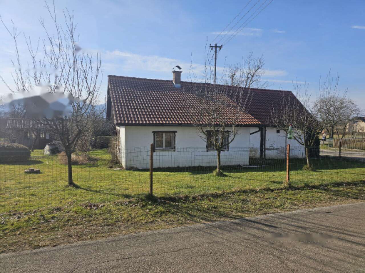 На участке также имеются дополнительные хозяйственные постройки, которые могут служить для хранения, мастерской или иных целей, но нуждаются в капитальном ремонте или сносе. Дом подключен к электричеству и водоснабжению; подъезд к дому осуществляется по асфальтированной дороге с уличным освещением. Объект находится в сельской зоне.