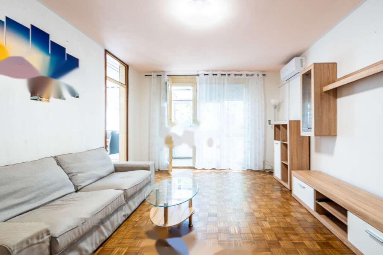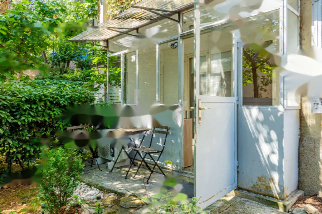 Дизайн квартиры тщательно продуман: здесь вы найдете кухню с обеденным уголком, ванную комнату, прихожую, две спальни, застекленный балкон и гостиную, из которой можно напрямую выйти в огороженное наружное пространство или сад, принадлежащие общему пользованию. Квартира полностью готова к эксплуатации и оборудована всем необходимым. Среди достоинств - наличие кондиционера для комфортного климата и выделенная кладовая площадью 6,5 м².