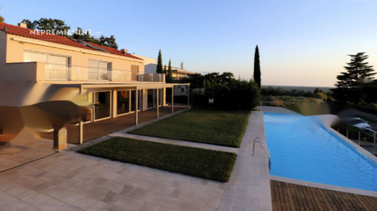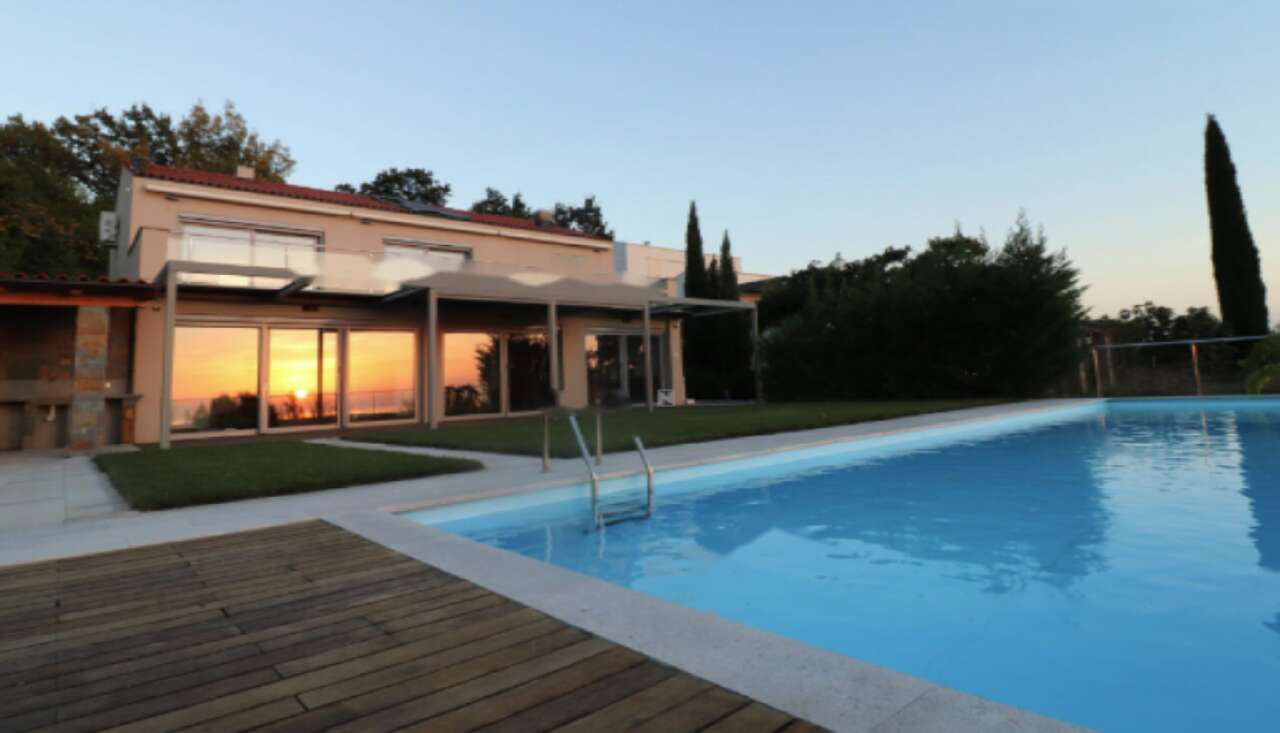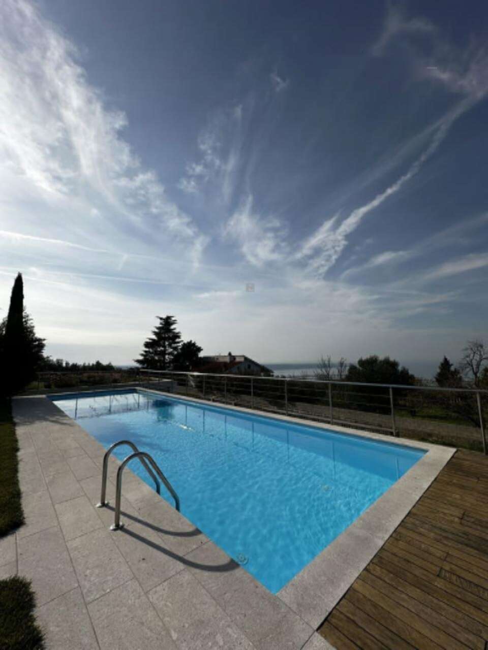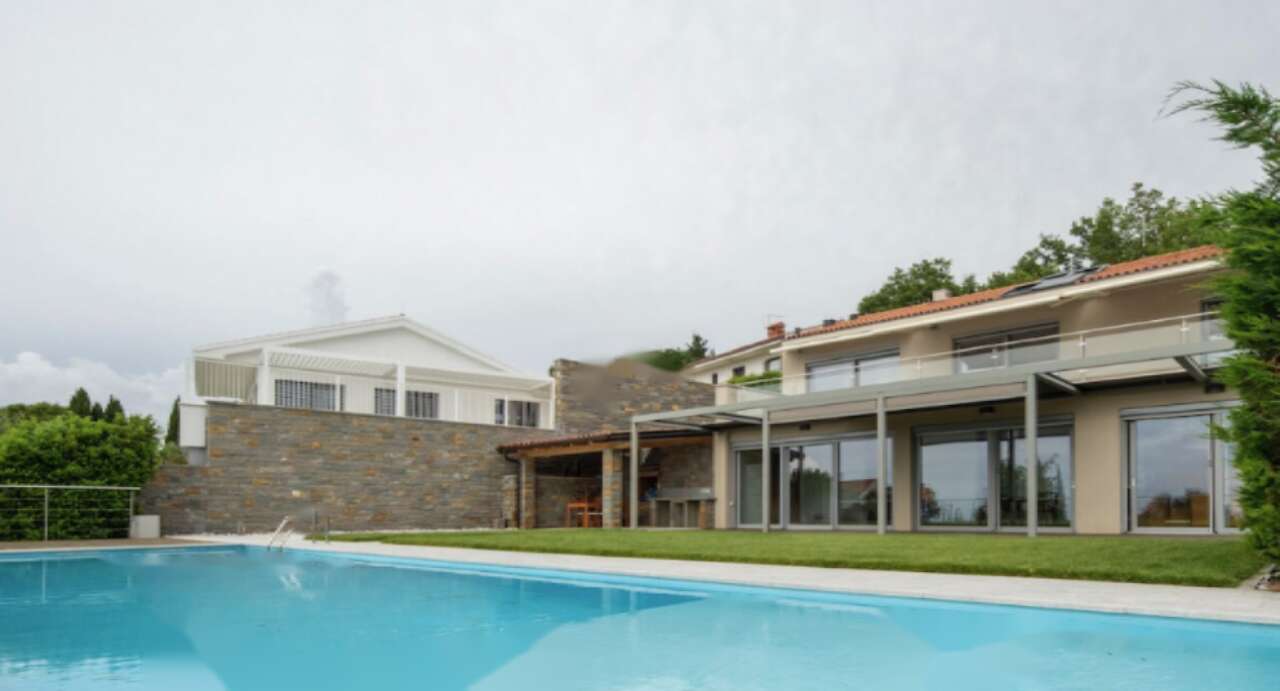На живописной береговой линии Словении, в спокойном районе над Изолой, расположилась великолепная современная вилла, возведенная в 2008 году. Этот роскошный дом впечатляет своей площадью в 441,9 м² и занимает участок в 1055 м², откуда открывается потрясающий вид на весь Пиранский залив.