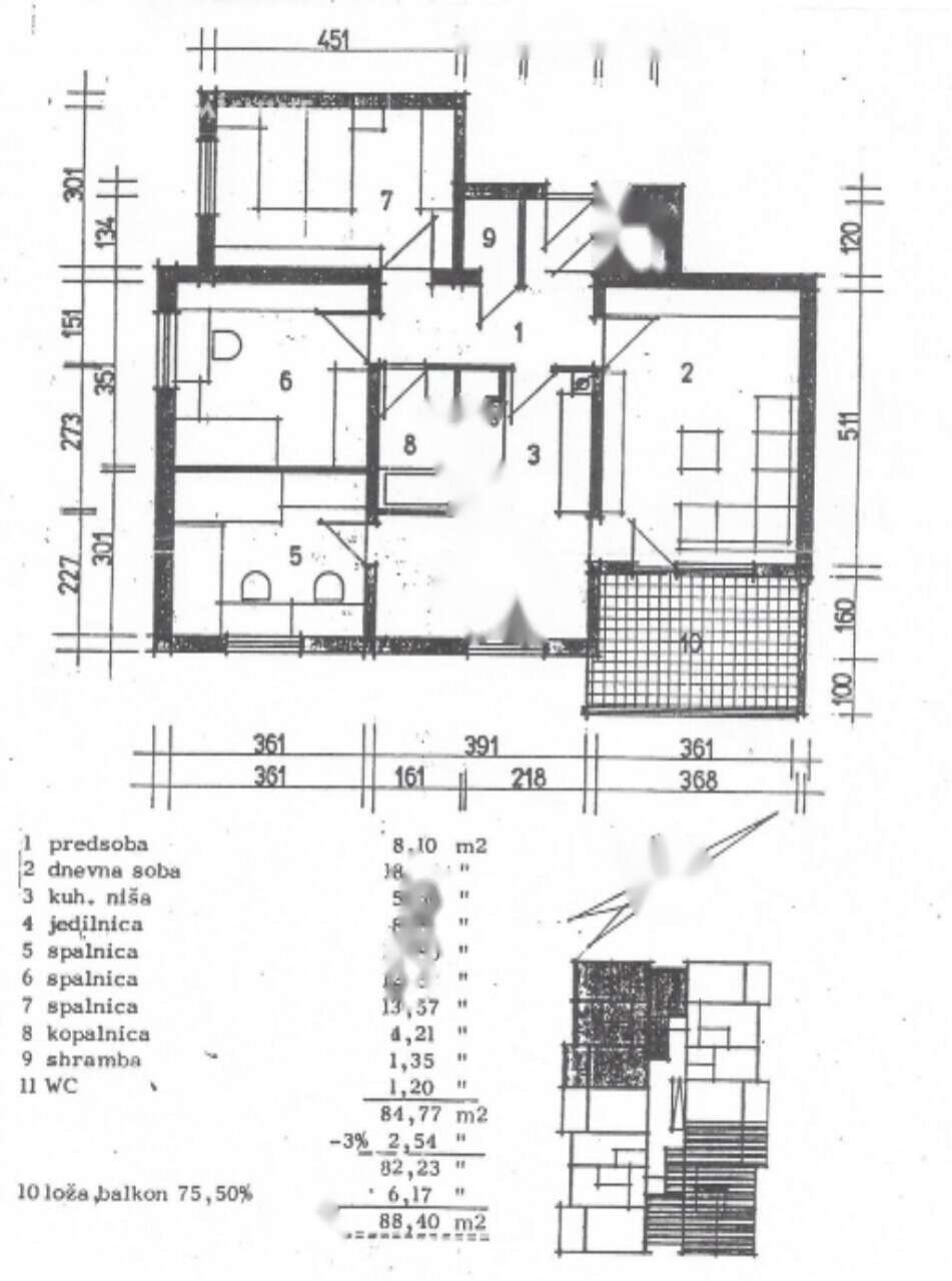 В просторной квартире, располагающей четырьмя комнатами и раскинувшейся на 88,4 м², находится истинное убежище на втором этаже многоэтажки в Лучии. Сооружение, возведённое в 1970-м году, идеальное для семейных уз или людей, ценящих просторные, комфортабельные условия проживания.